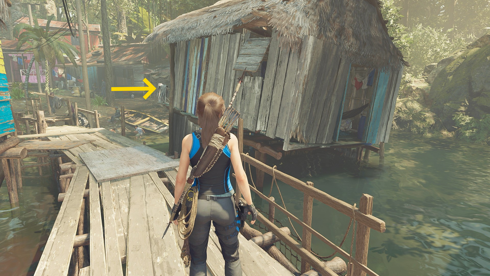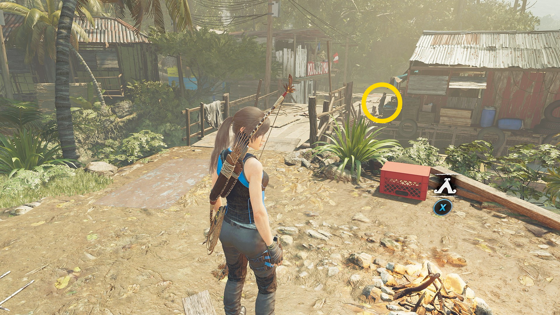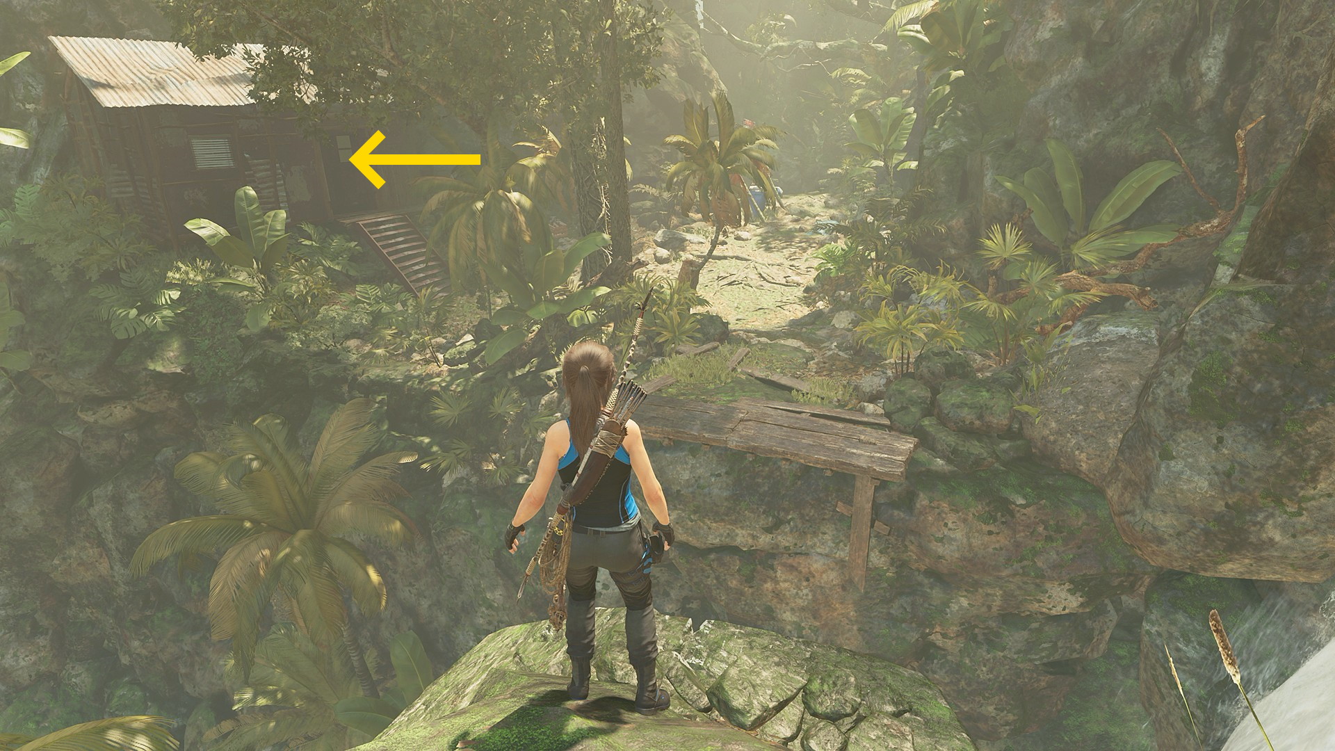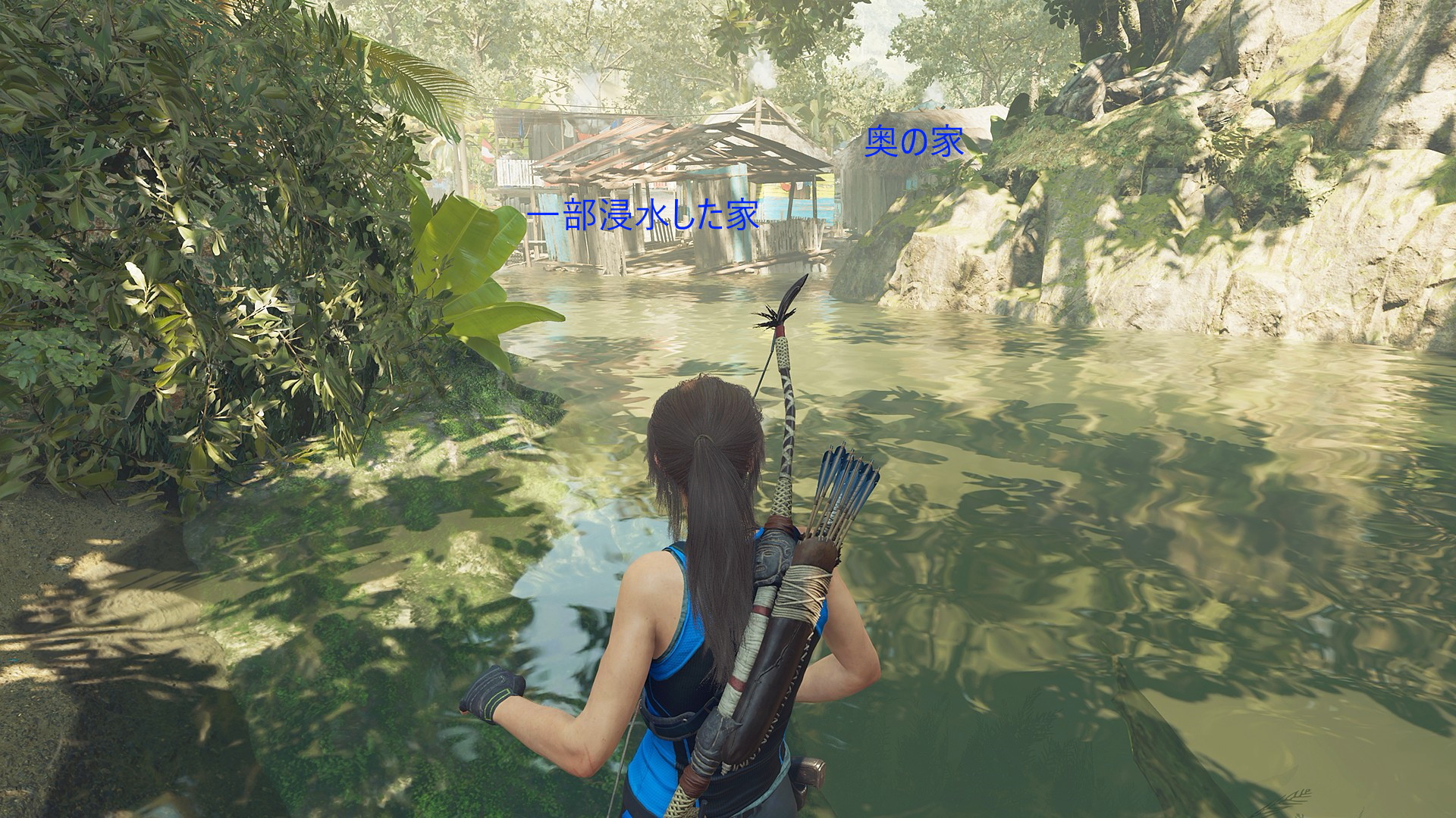 - ジャンプで対岸に着地したら左側の小屋のドアを X 長押しで開ける
