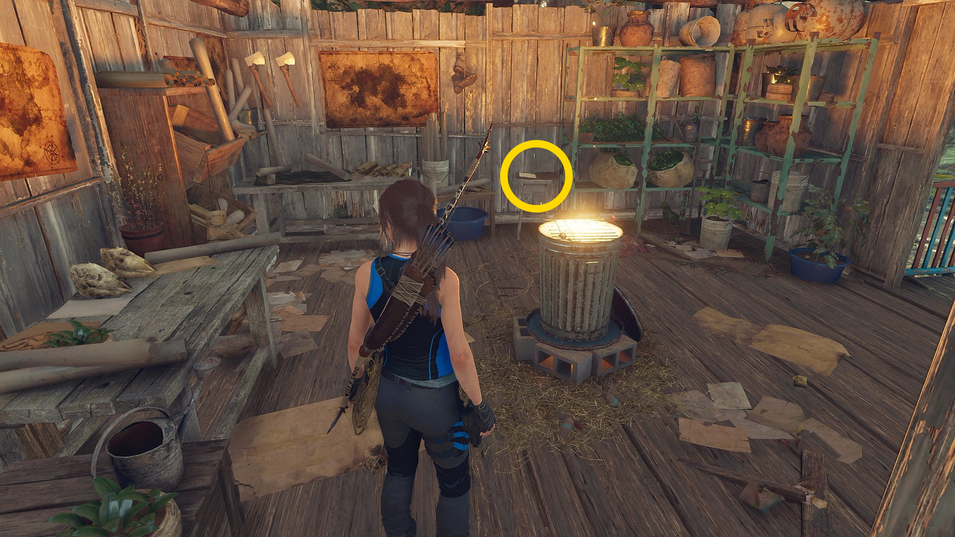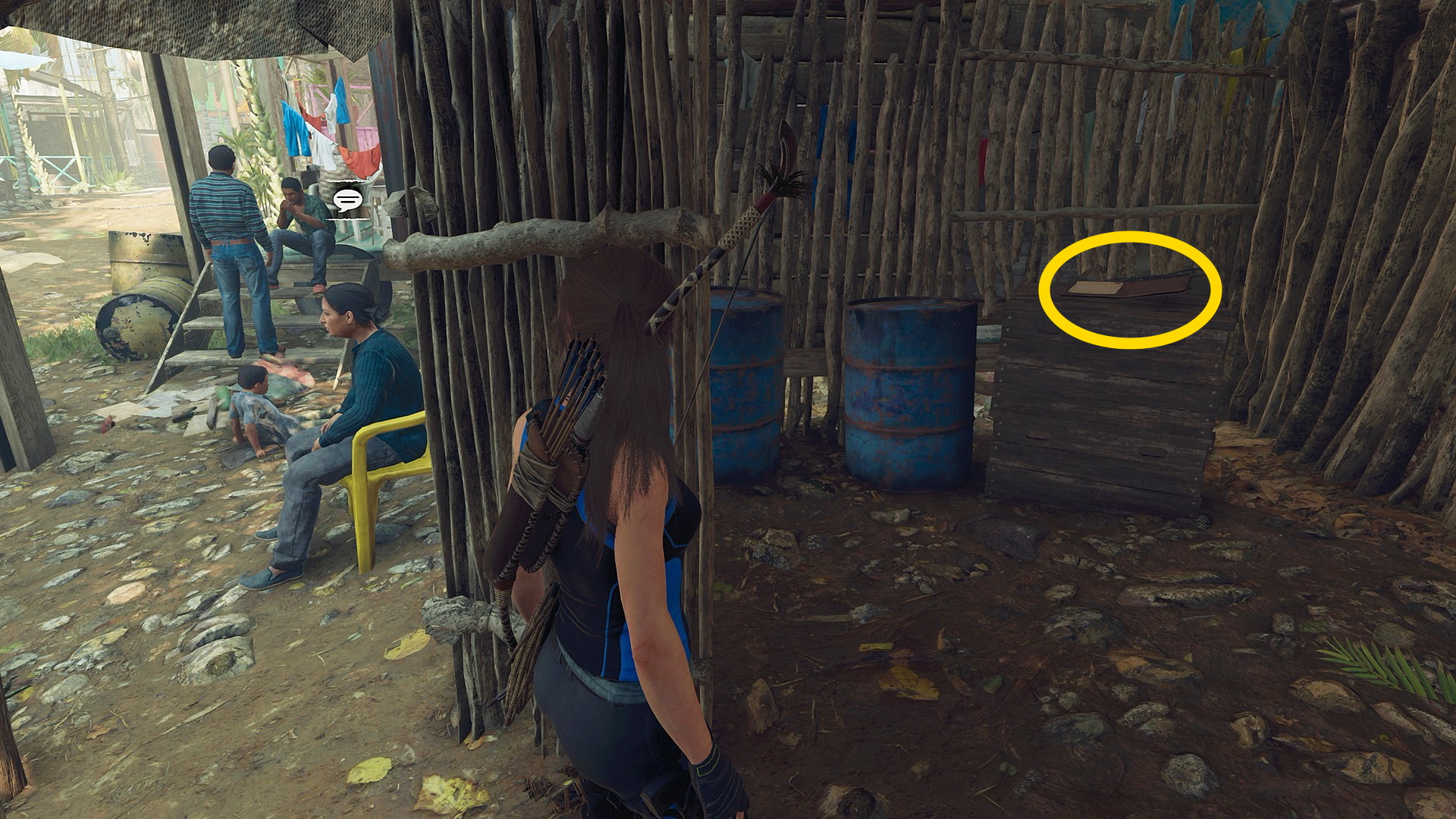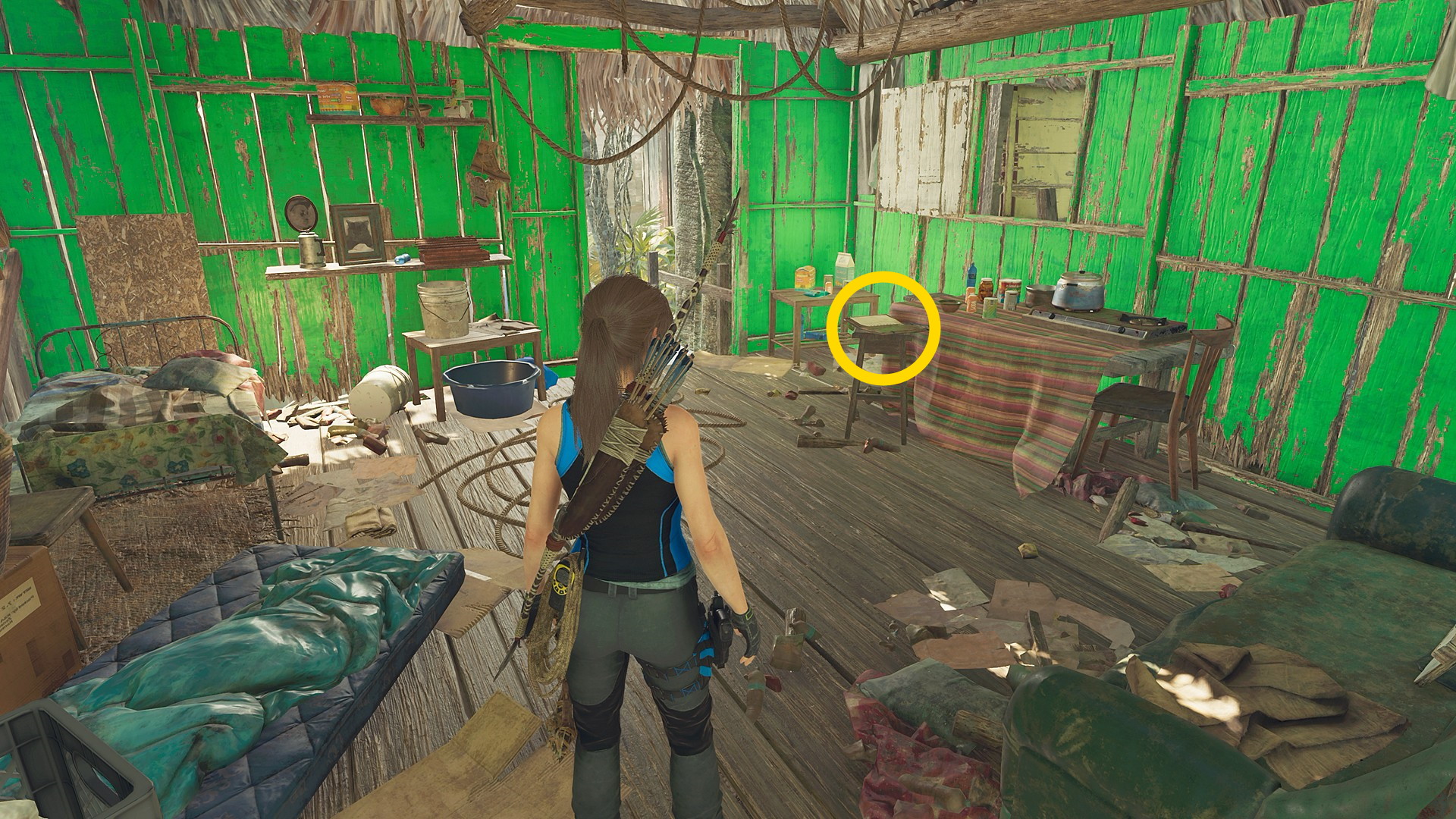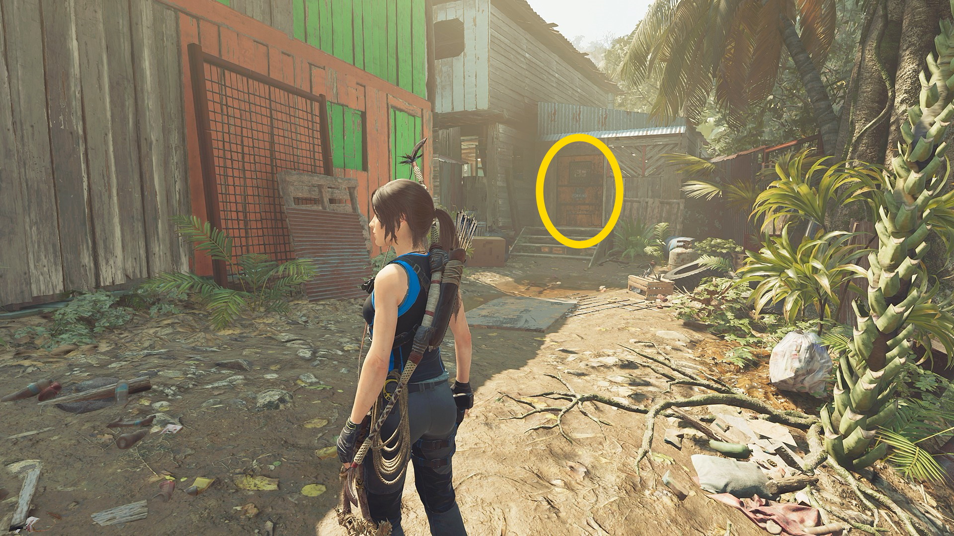 - ジャンプで対岸に着地したら左側の小屋のドアを X 長押しで開ける