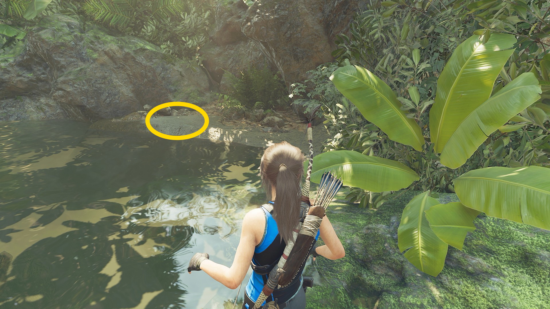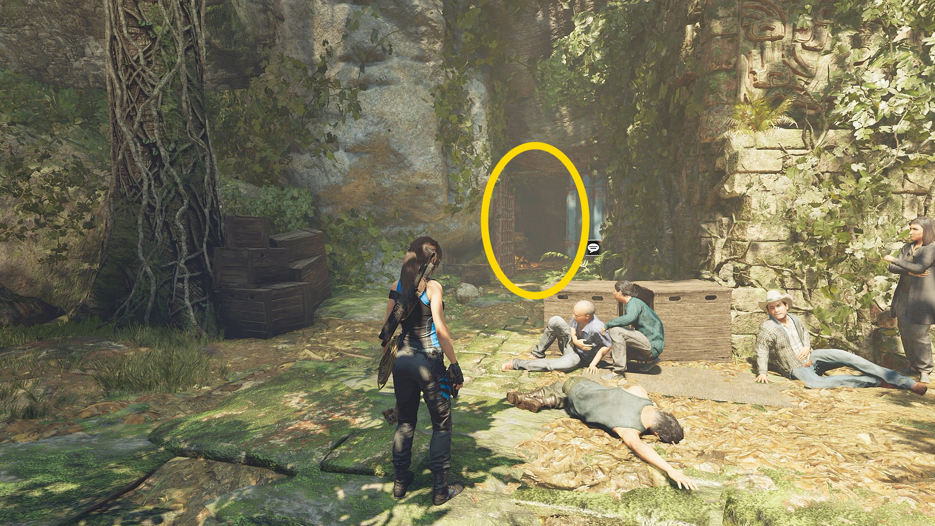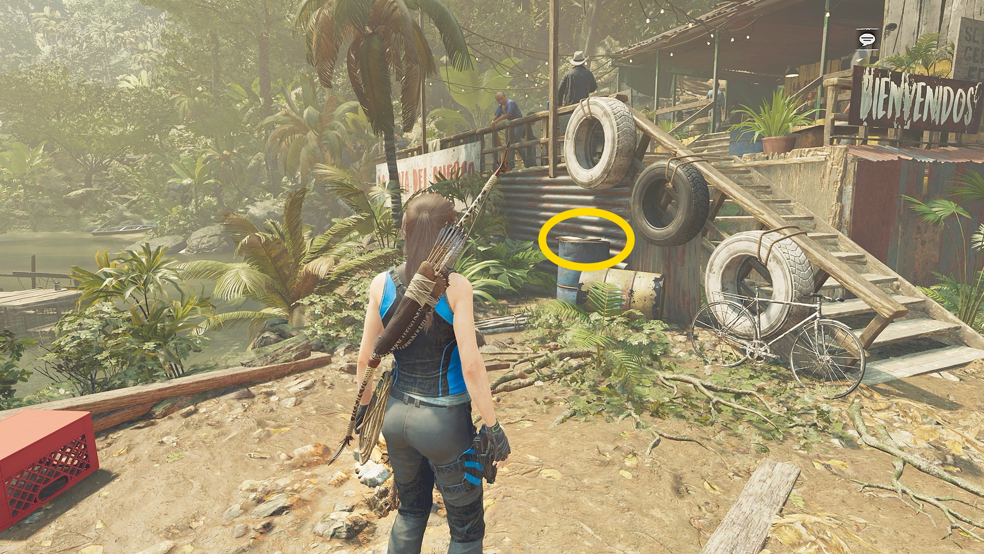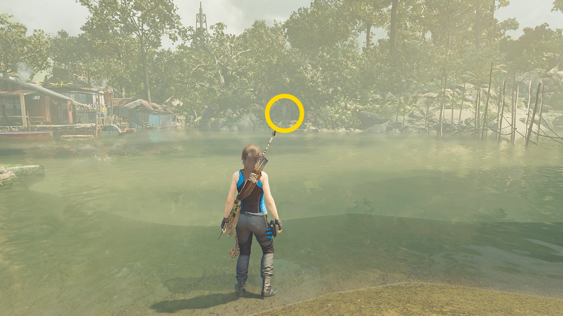 - ジャンプで対岸に着地したら左側の小屋のドアを X 長押しで開ける