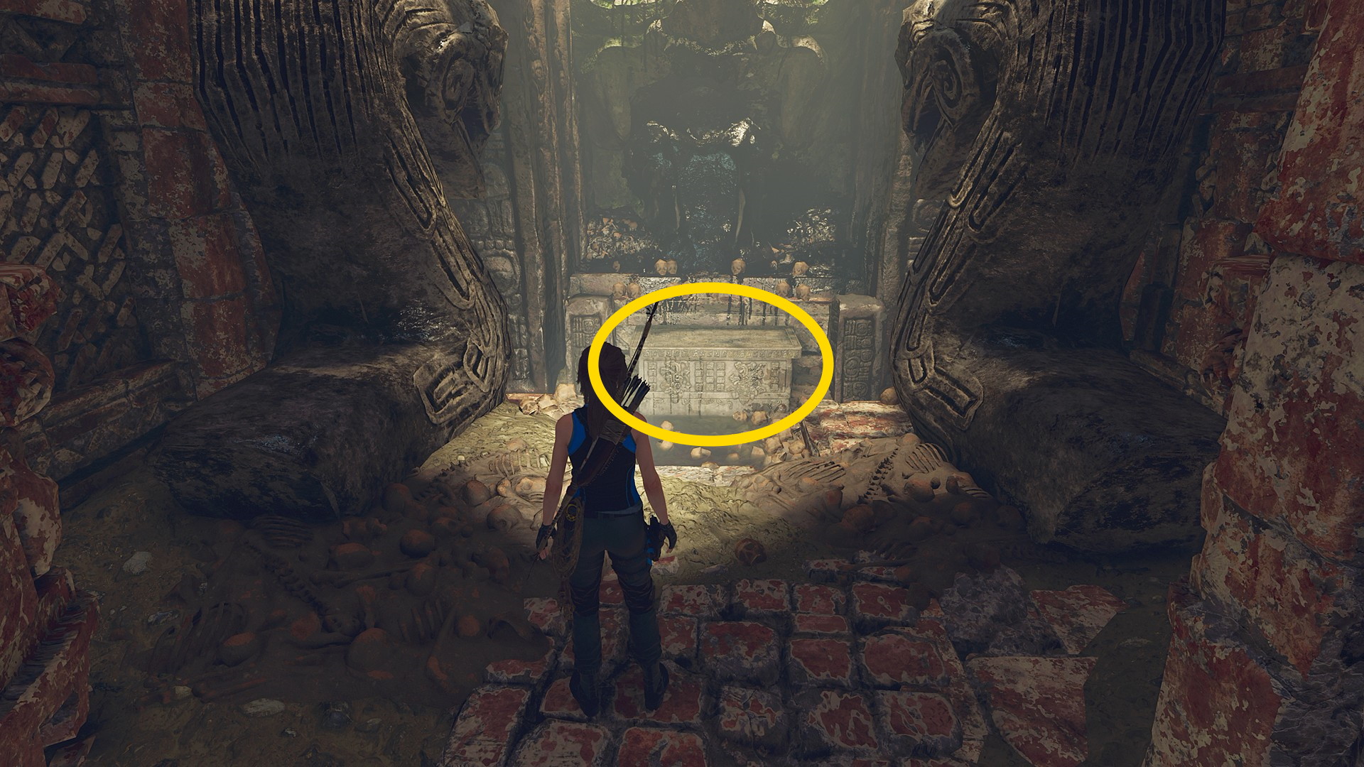 - 無事にグラップリングフックで向こう側へ行けたら、ジャンプで進むと突き当りに石棺