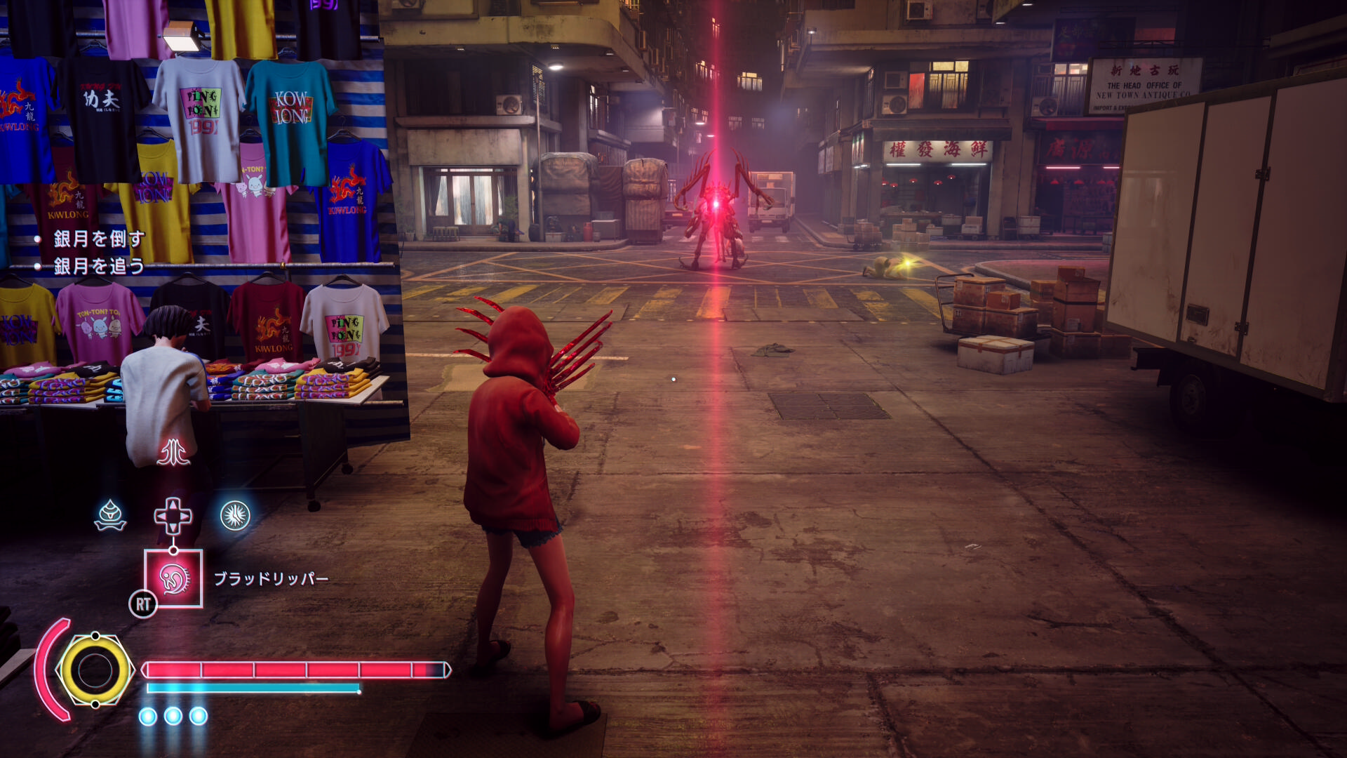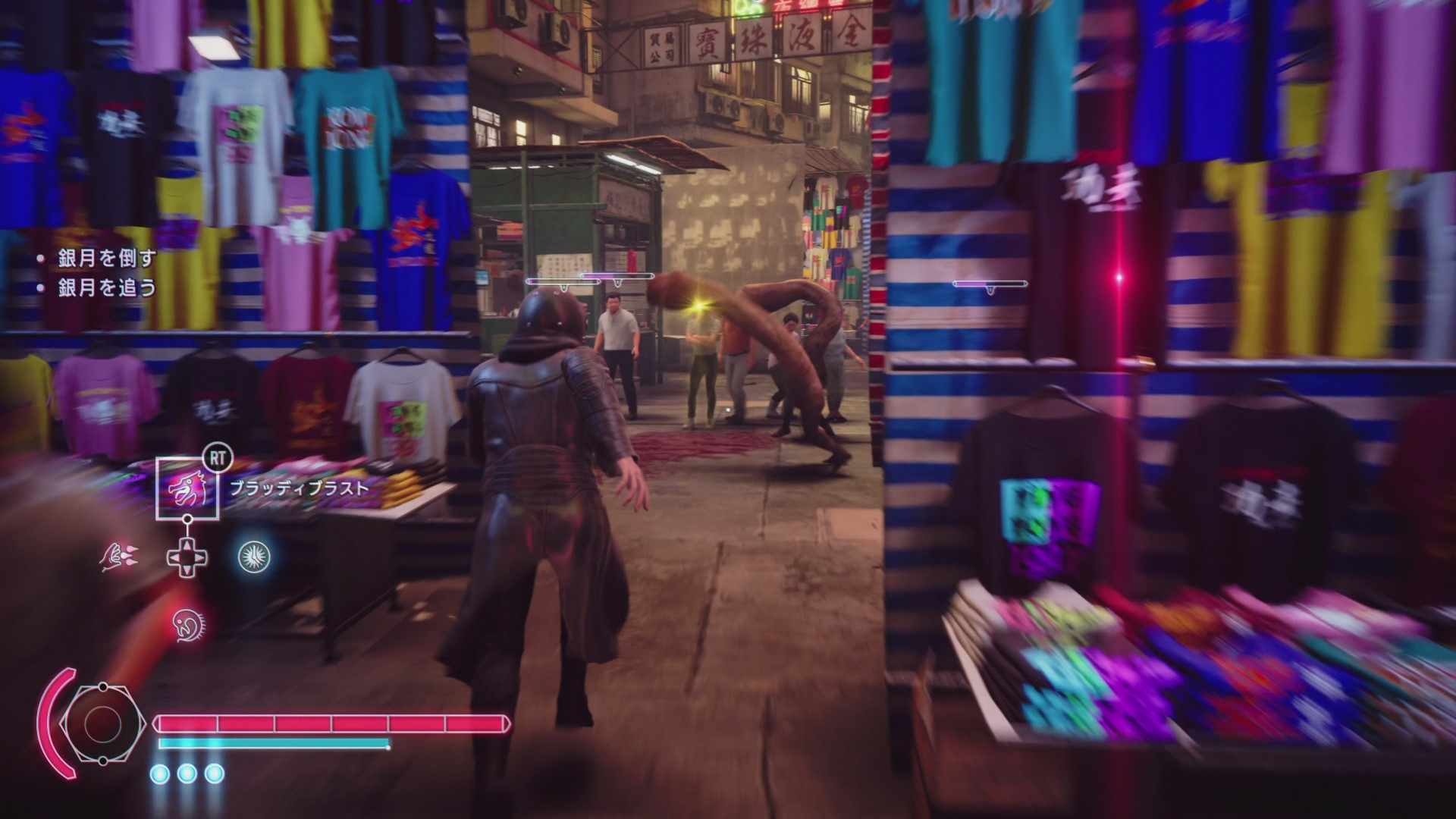 • 路上市場を抜けた先に銀月が止まっているので近づくと戦闘再開