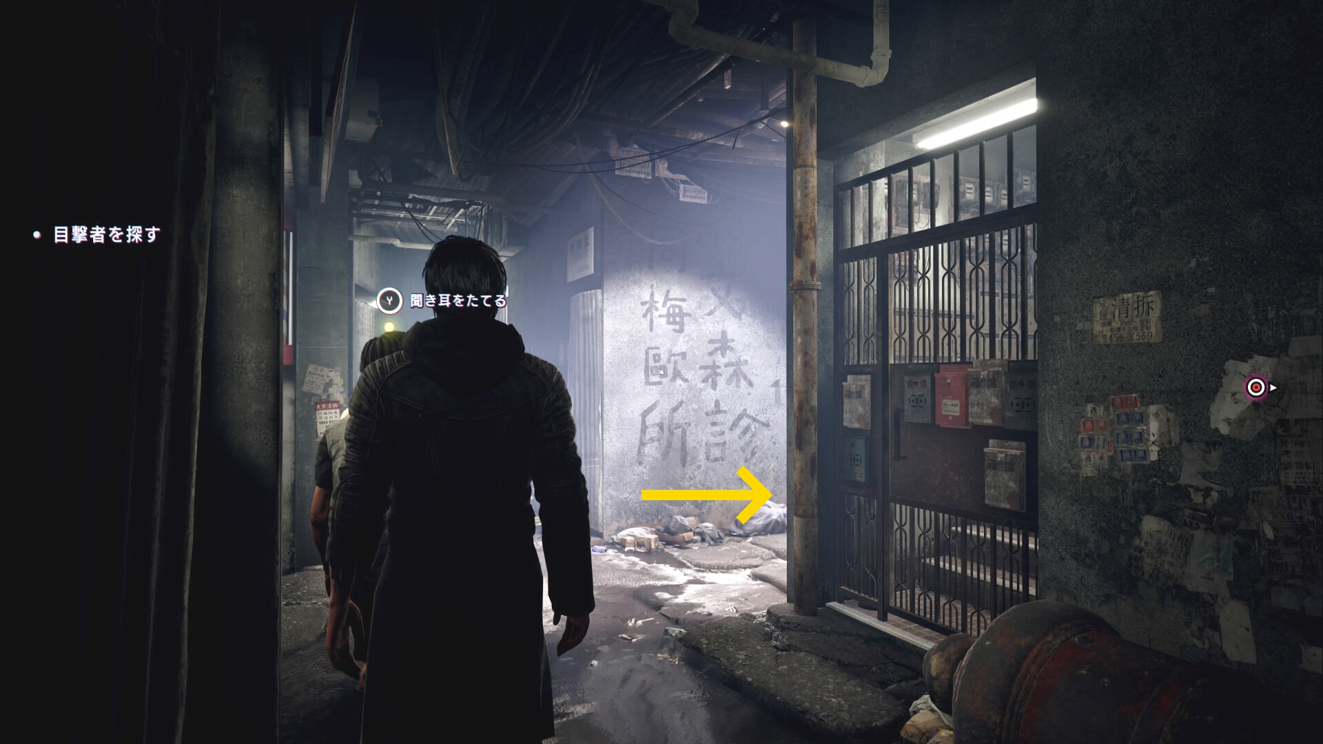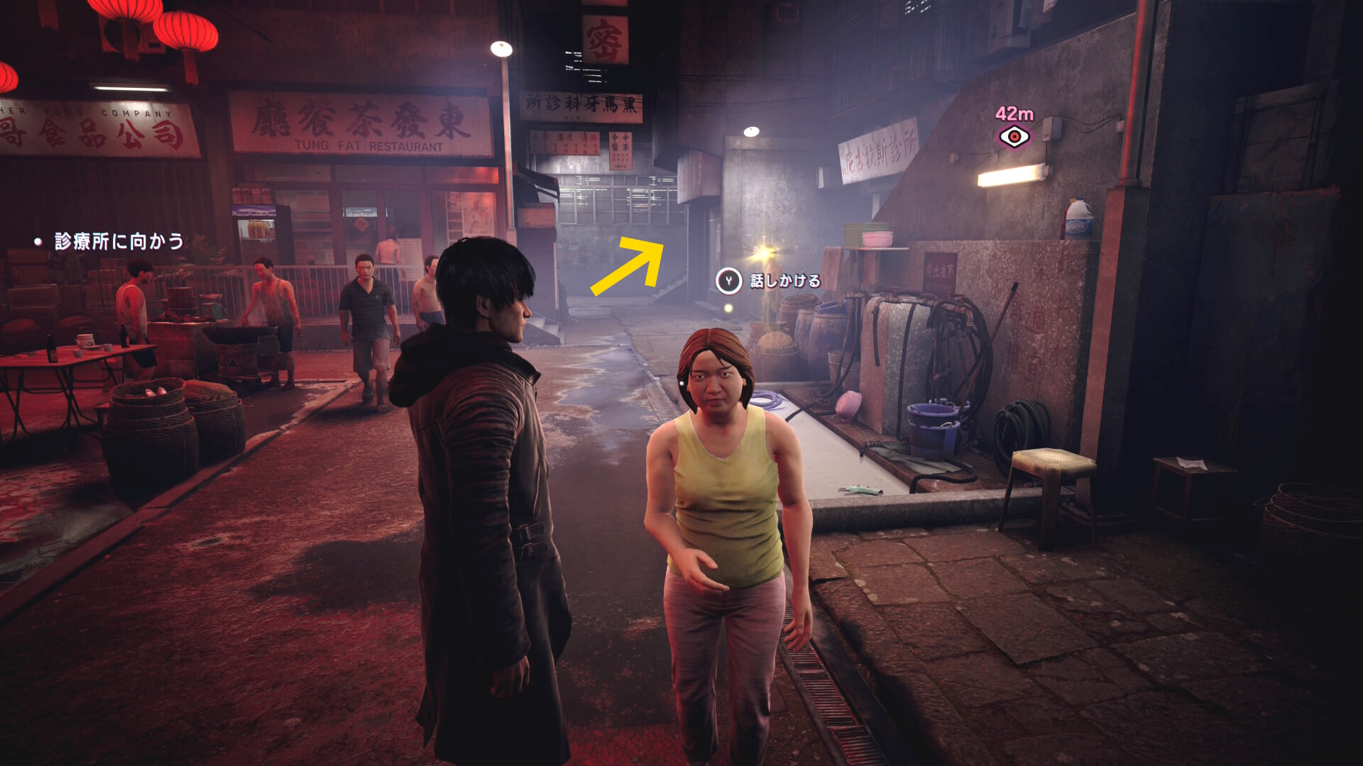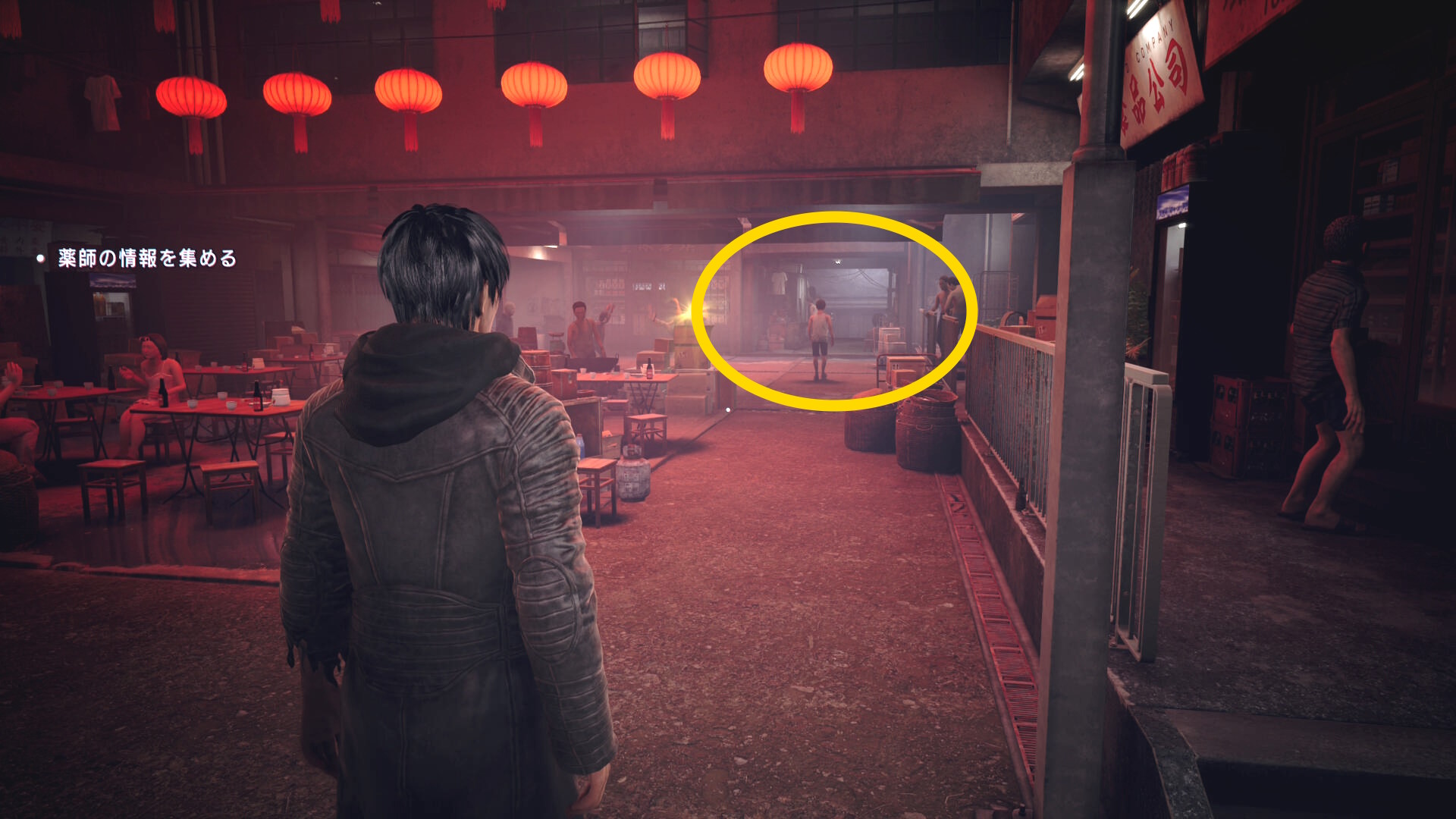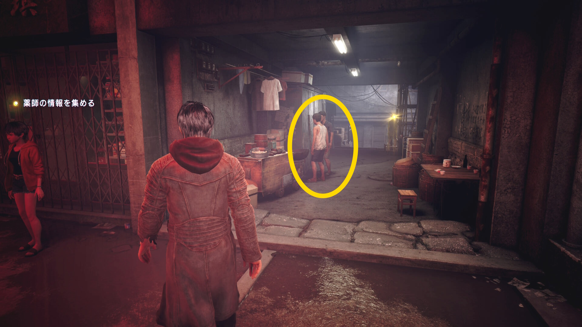 - 右奥に体育座りした男性がおり、これが目撃者なので話しかける