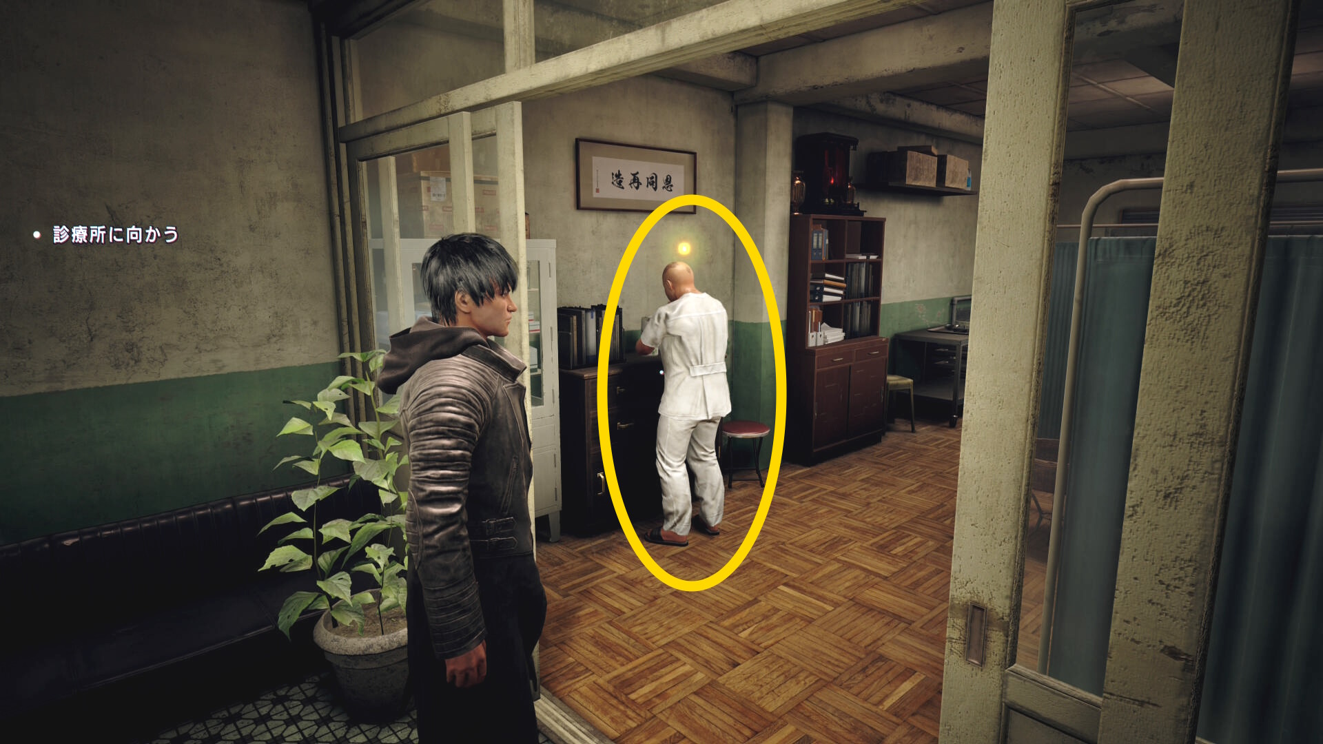 - 会話後、診療所の奥に進もうとすると止められる