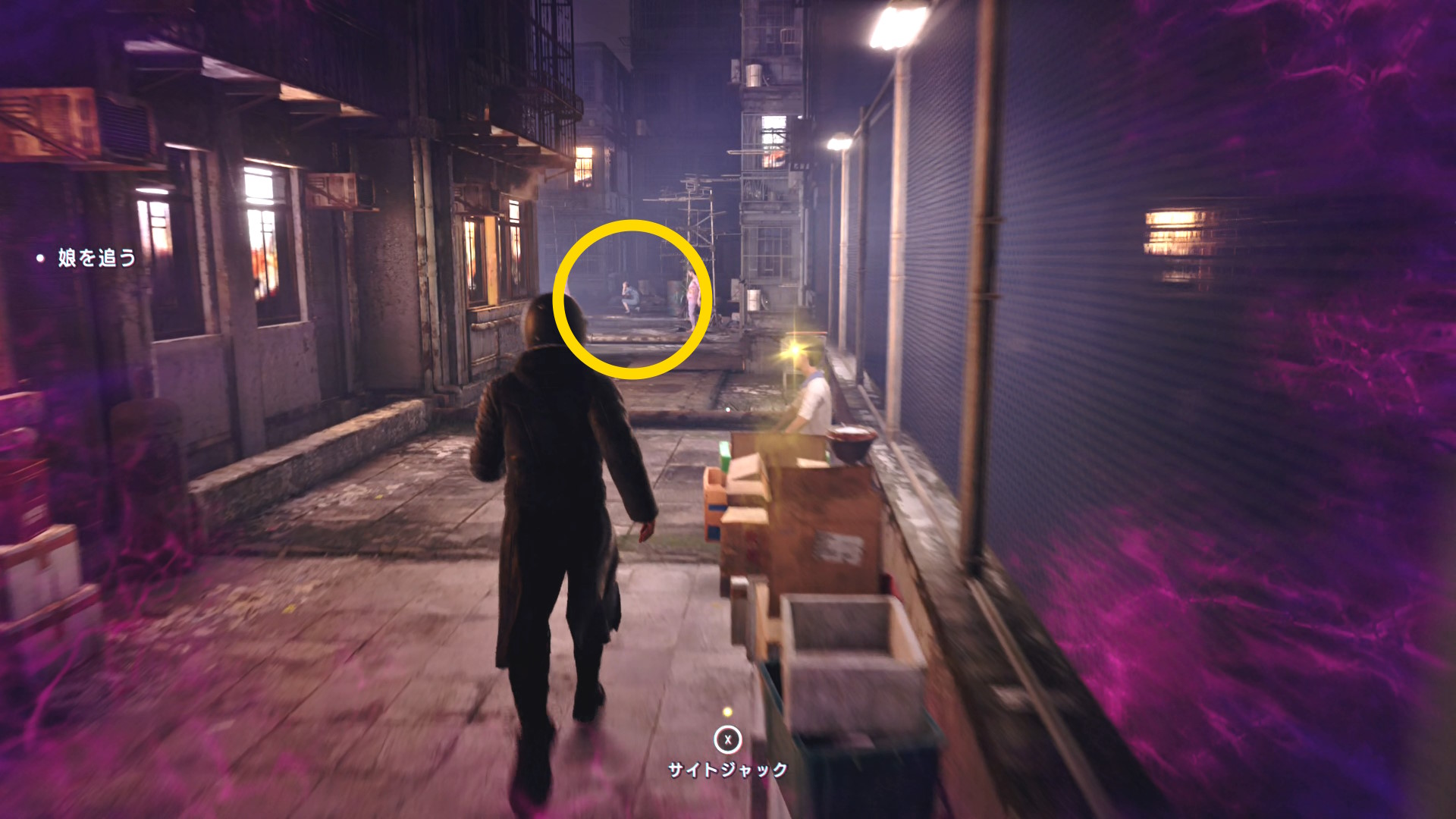 - カットシーン後、娘を追いかける