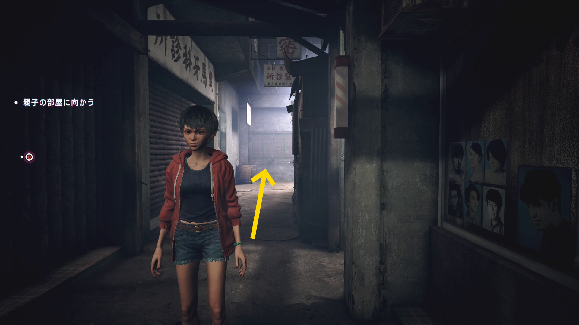 - 後ろを向くと「大北酒店」の看板が見えるのでブラッドジャンプ