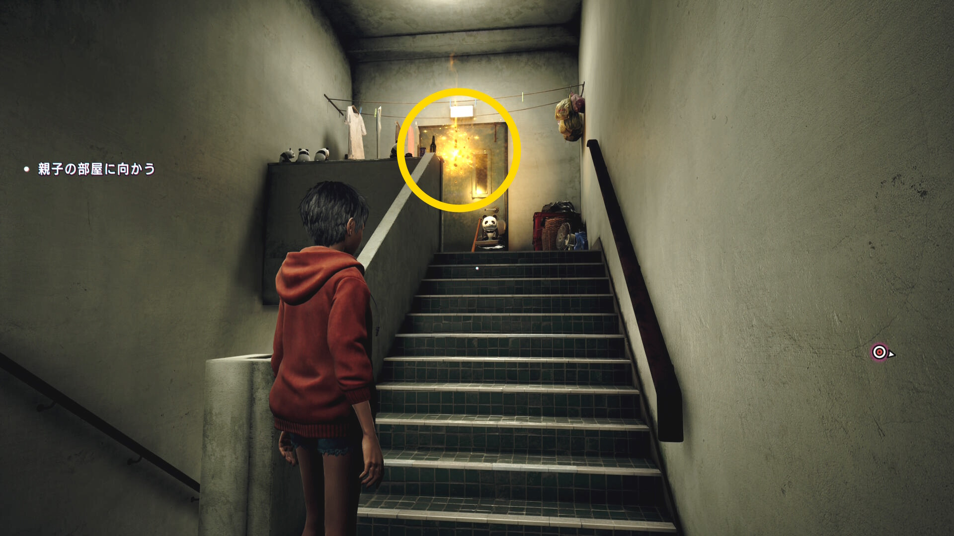 - 回収に向かう際、右壁(手すり)に沿って移動するとアレックスとのカットシーンが始まってしまう