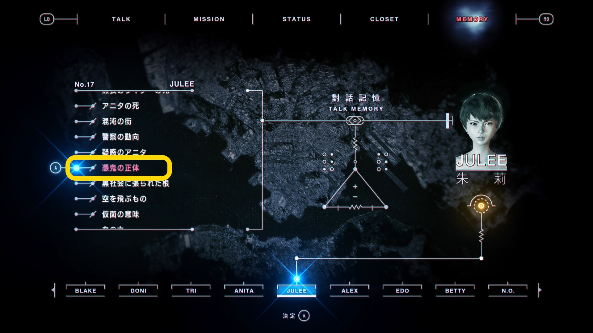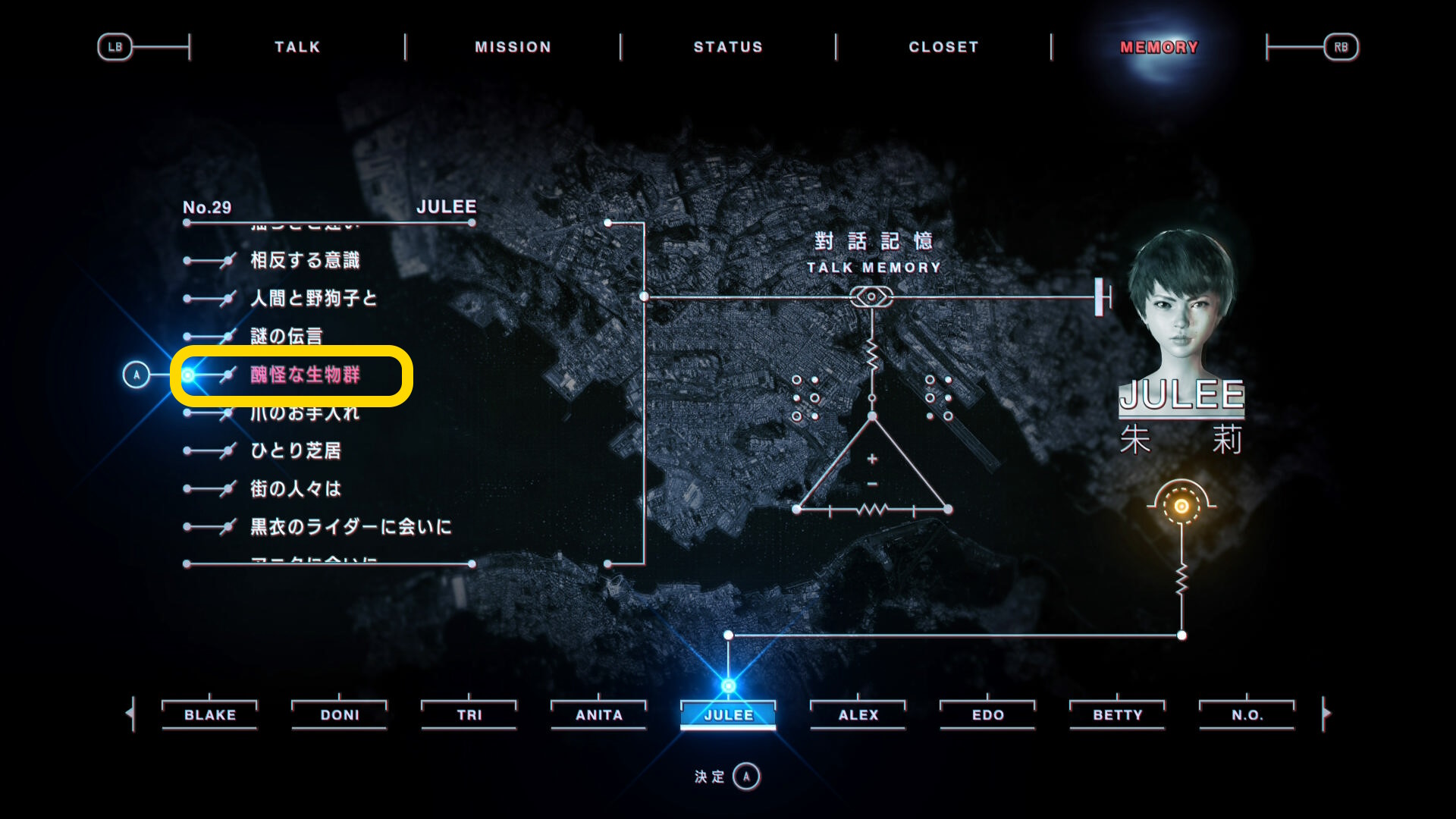 - ジュリーの2つ目の会話を観終わると「MEMORY」タブのジュリーの会話の中で新しい選択肢が発生したものがあるとアナウンスされる