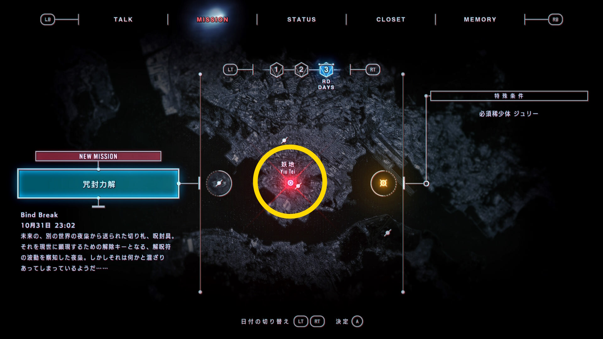 - 次のミッションは3日目の「呪封力解」をプレイする
