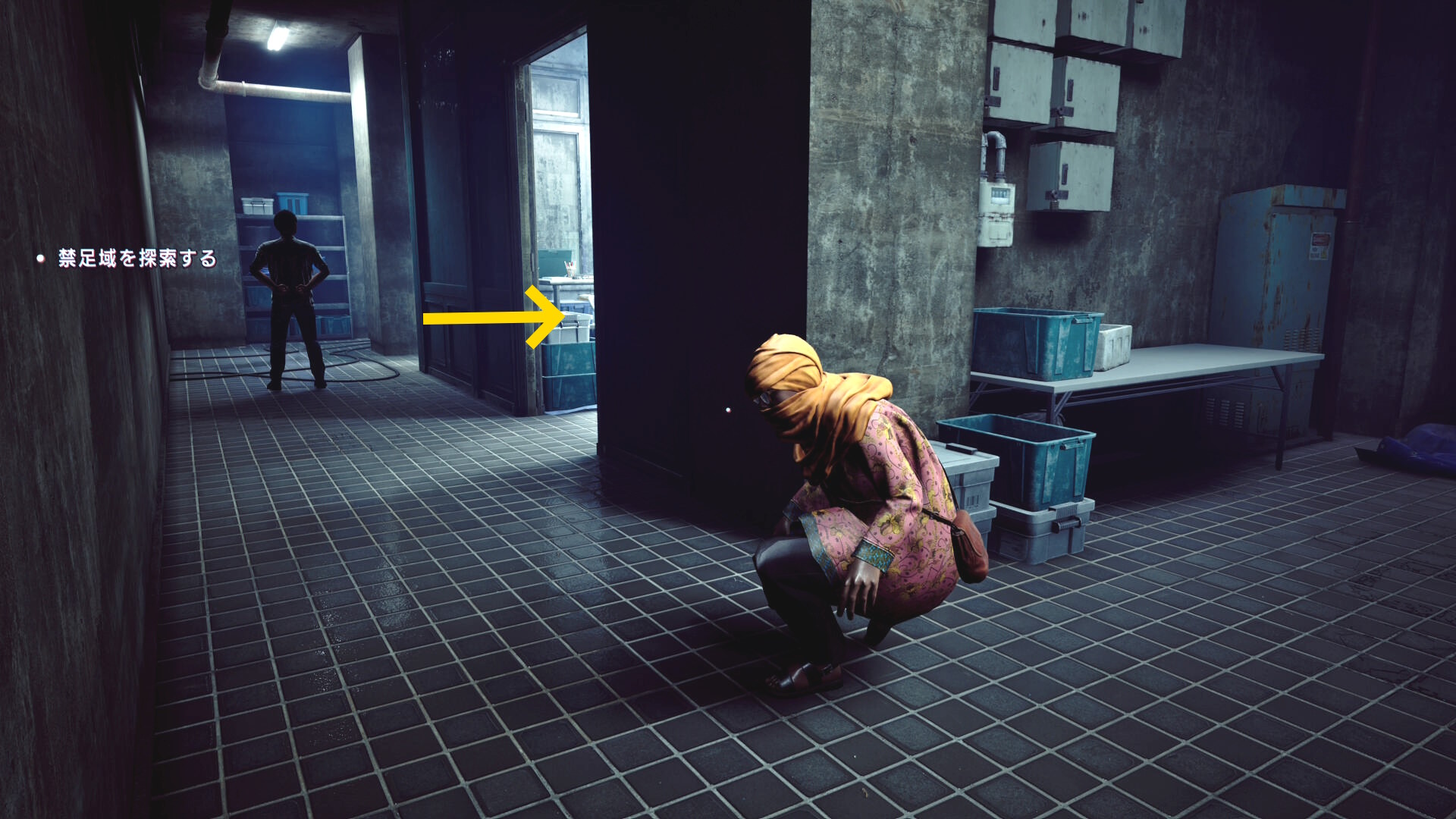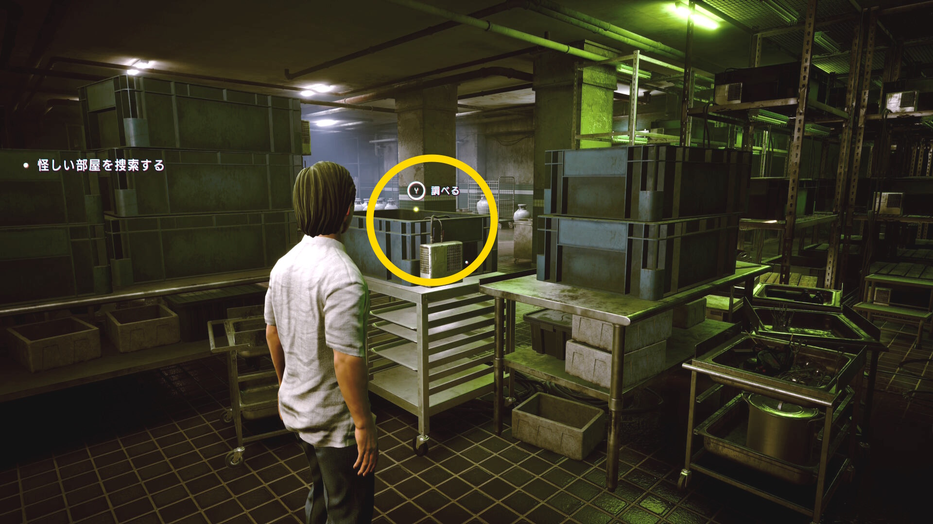 • カットシーン後、右を向いてコンテナを調べる