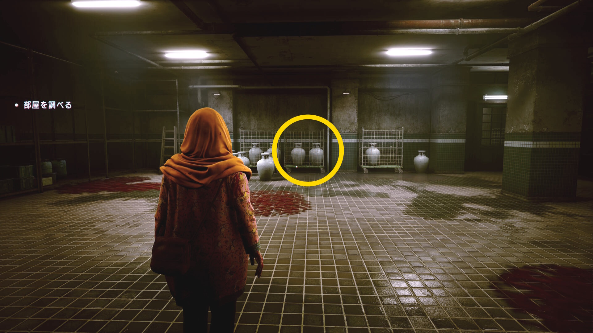 • 後ろを向き、奥に見える壺を調べる