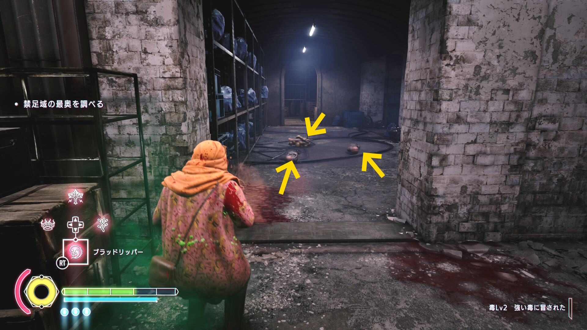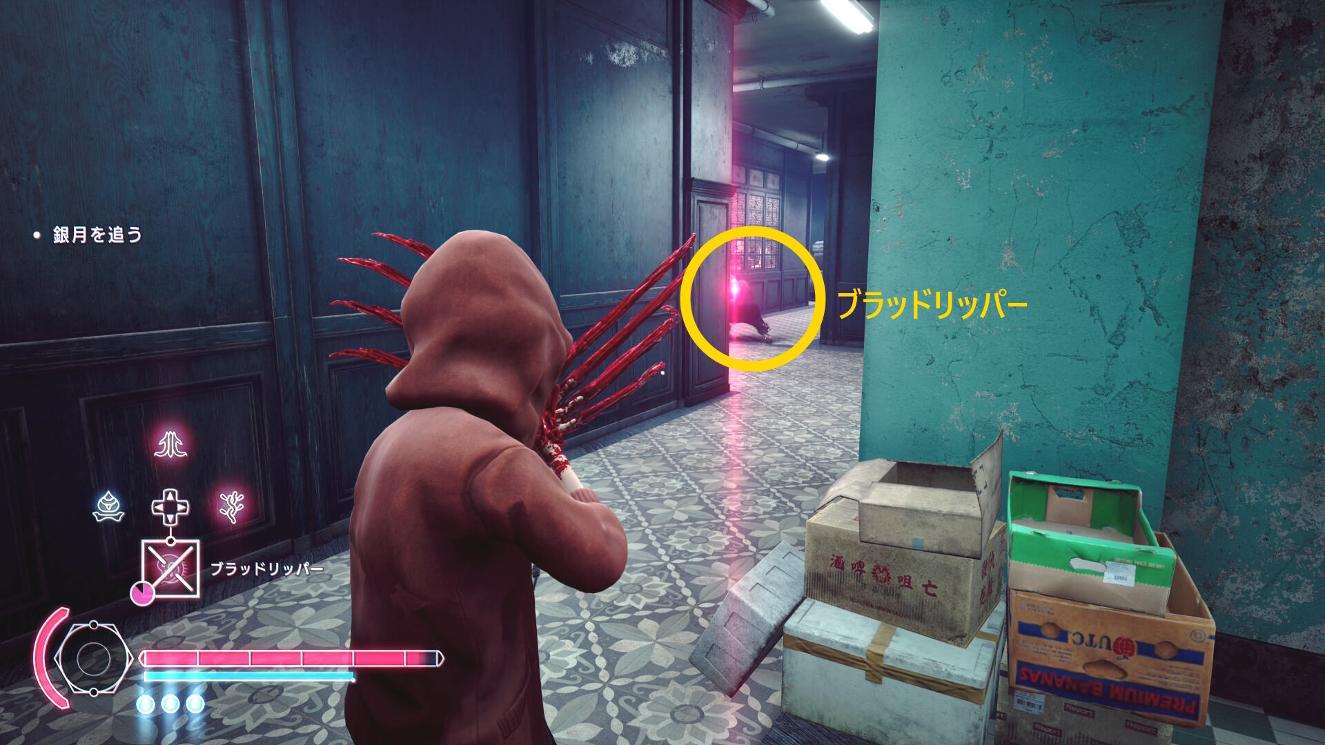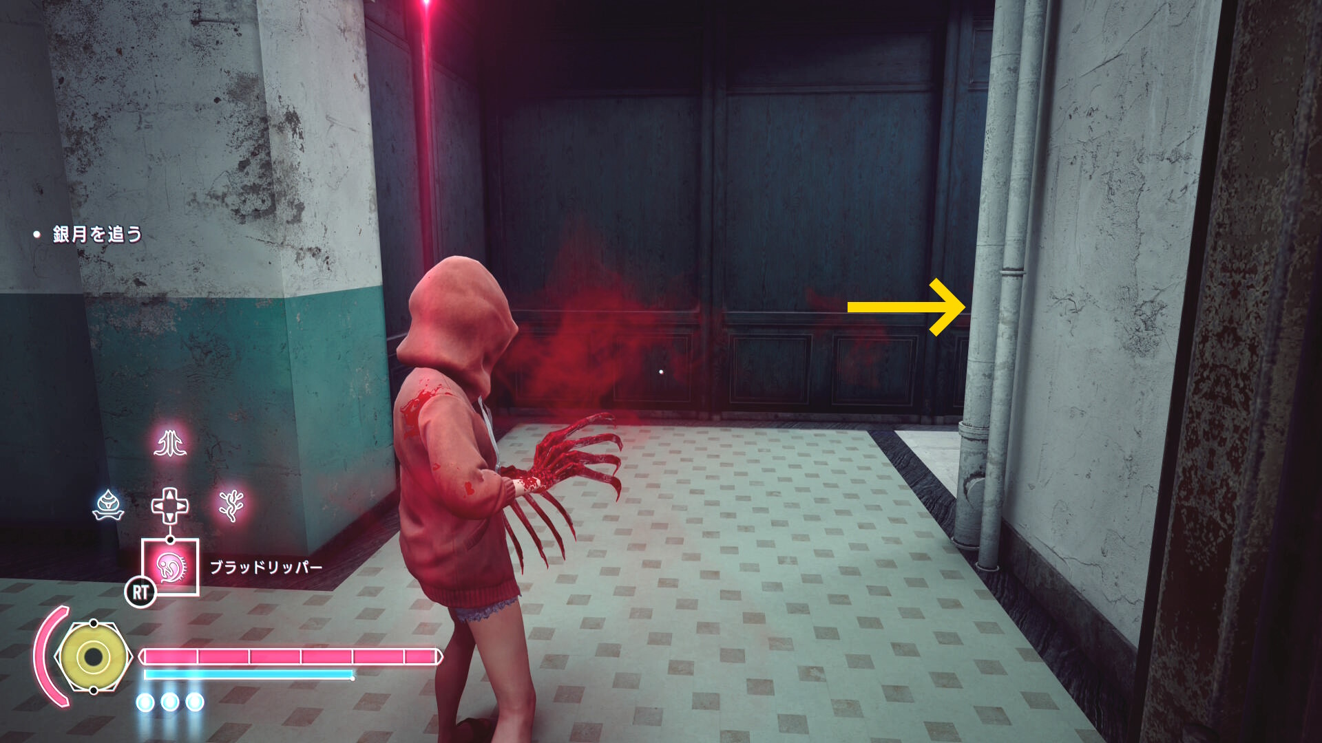 • 殲滅後、頭上の足場にブラッドジャンプ