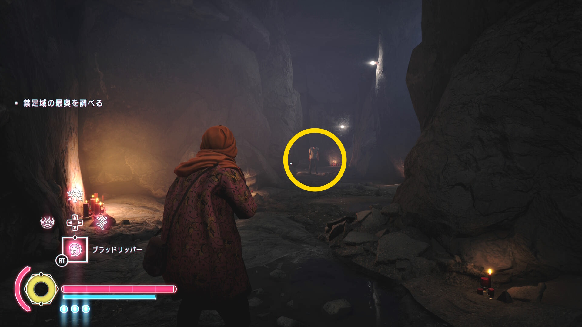 • 洞窟のようなところに出てくると正面奥に信者がおり、野狗子化して襲ってくる(ちょっと見にくい画像で失礼)