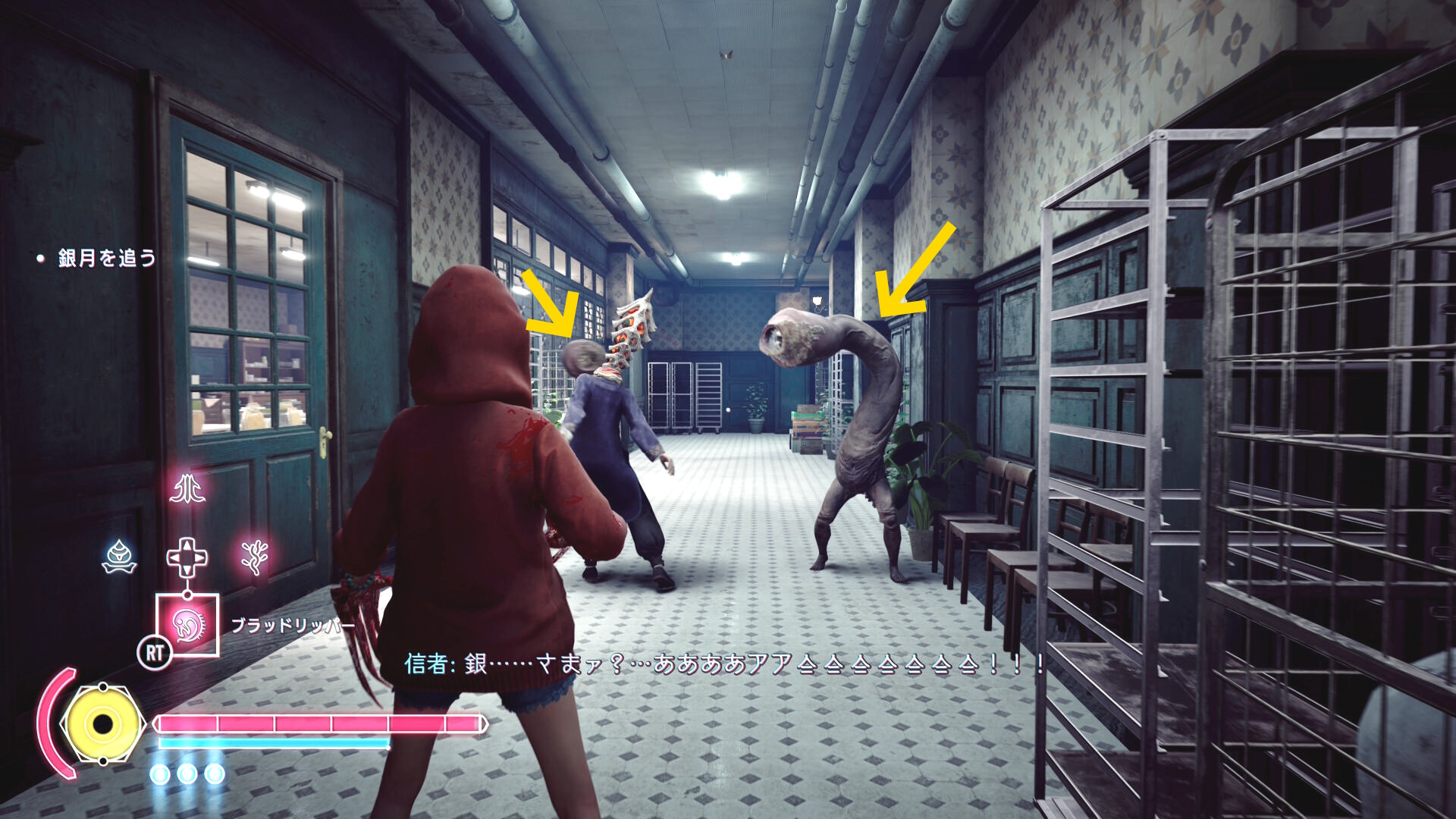 • 銀月が廊下にいる信者を亜成体化させるので2体をキル