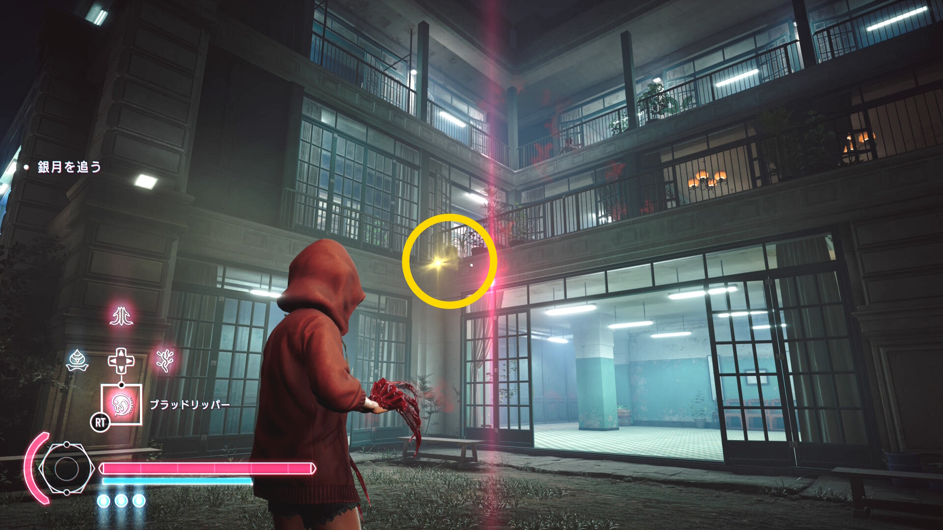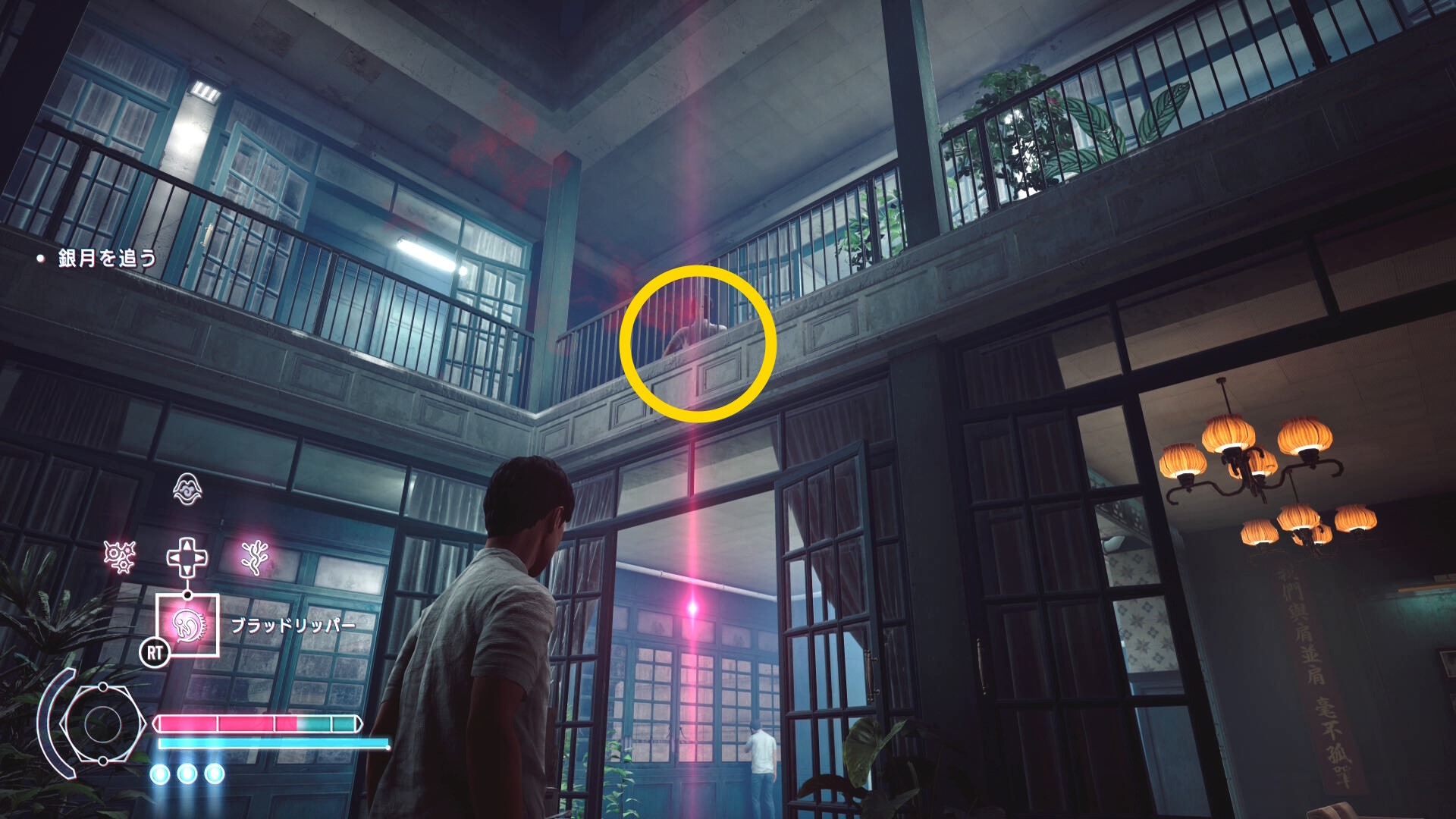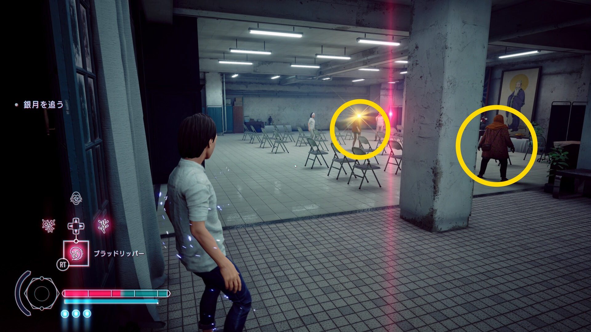 • 憑依モードを発動し、2階は無視して3階のベランダに上昇し、そこにいる信者に憑依してもオーケー