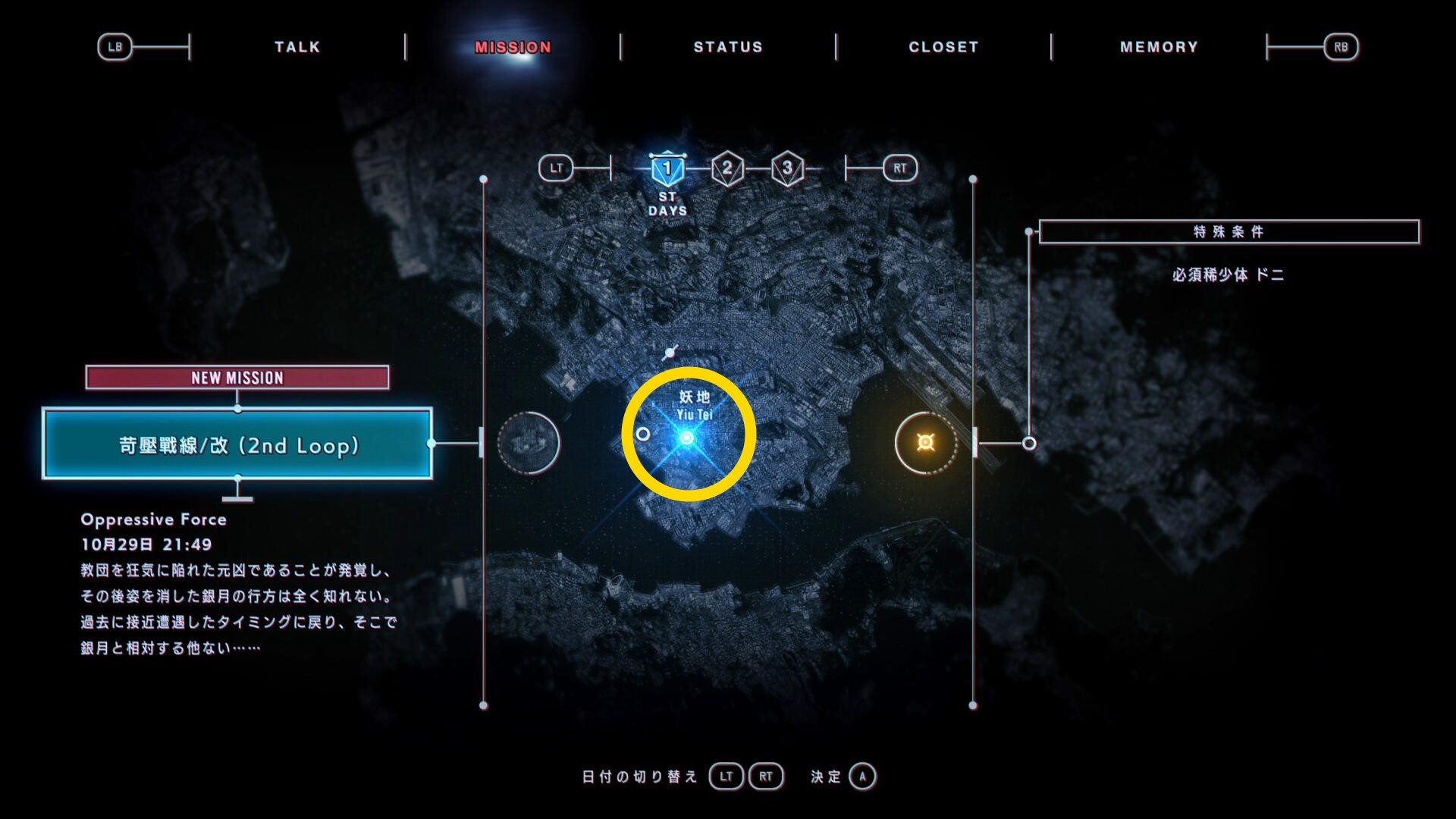 • いくつか開始できるミッションがあるが、当サイトでは1日目「苛壓戦線/改(2nd Loop)」をプレイする