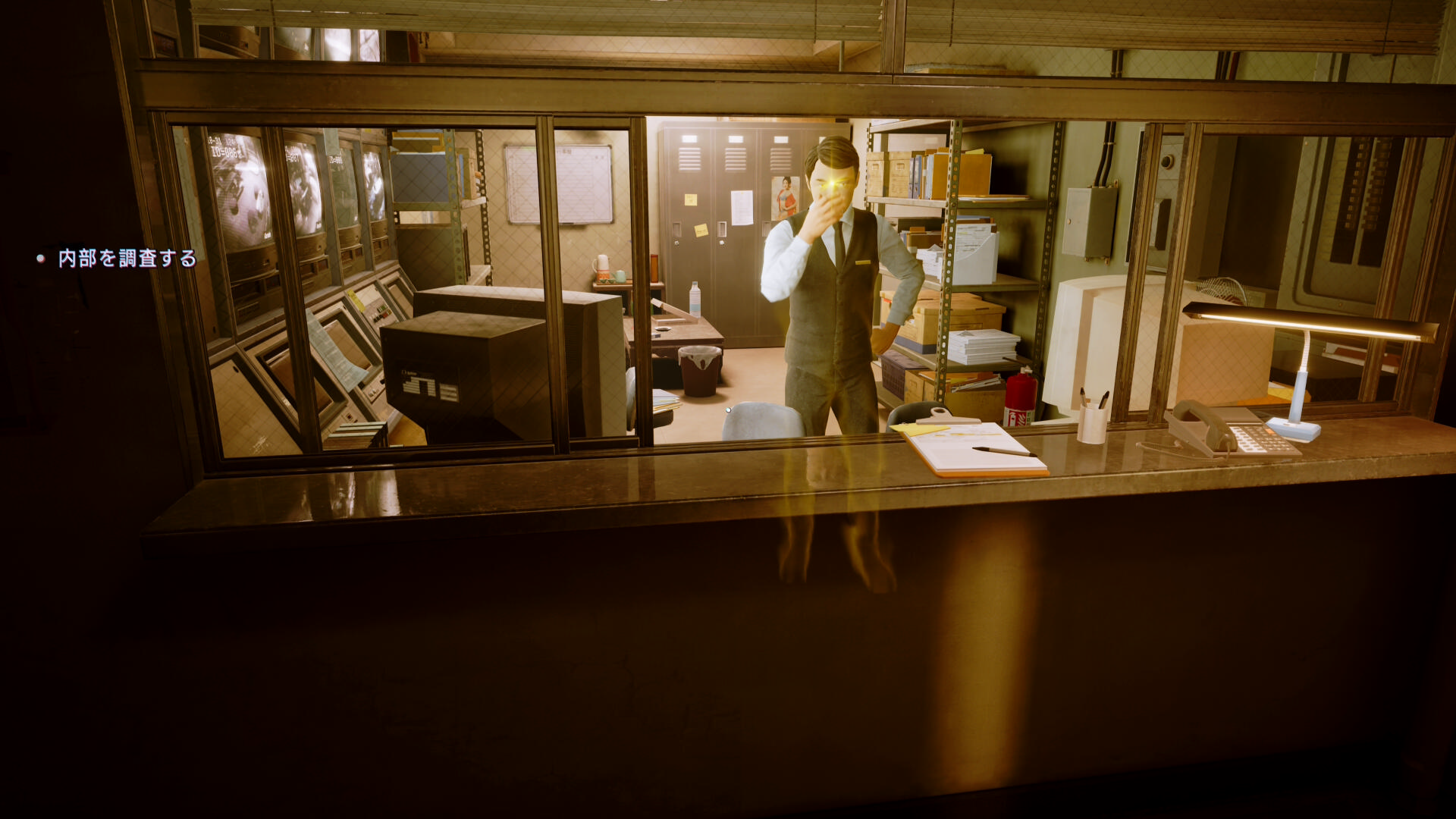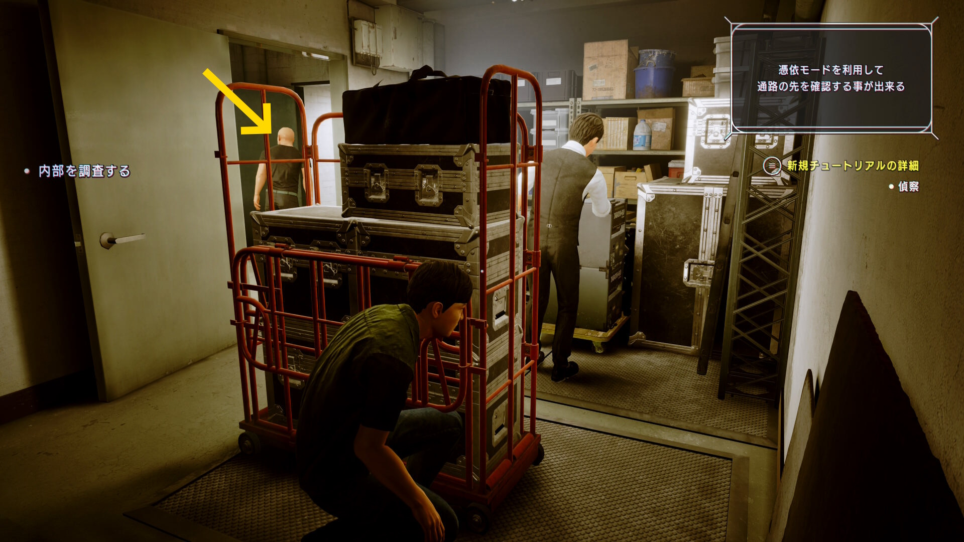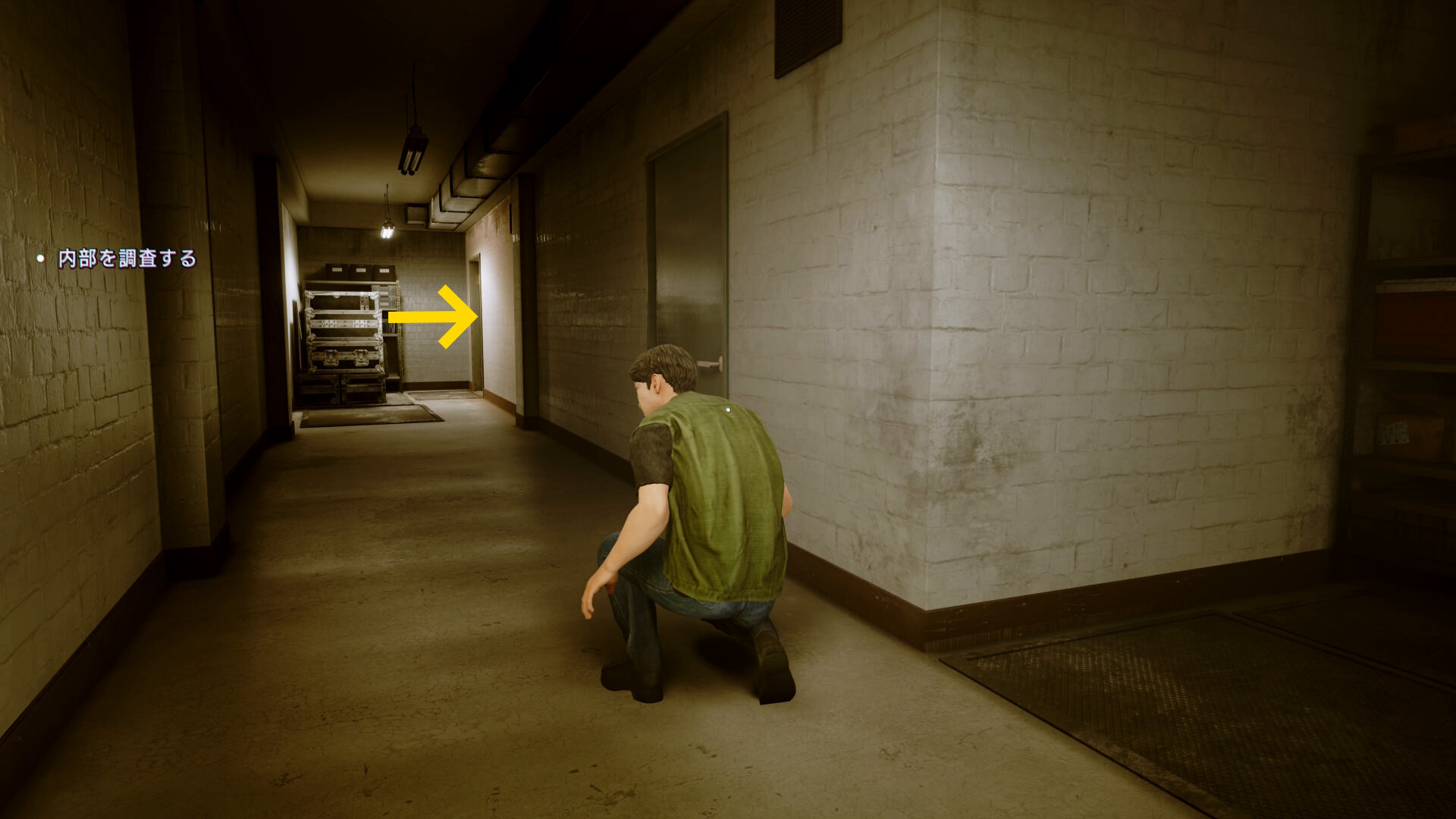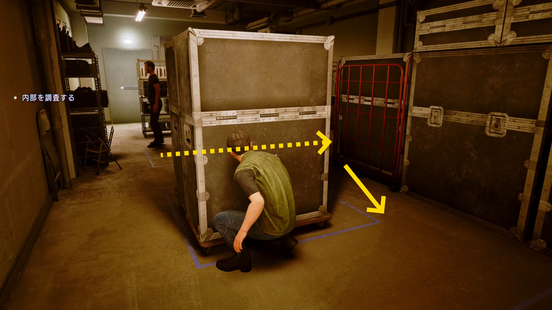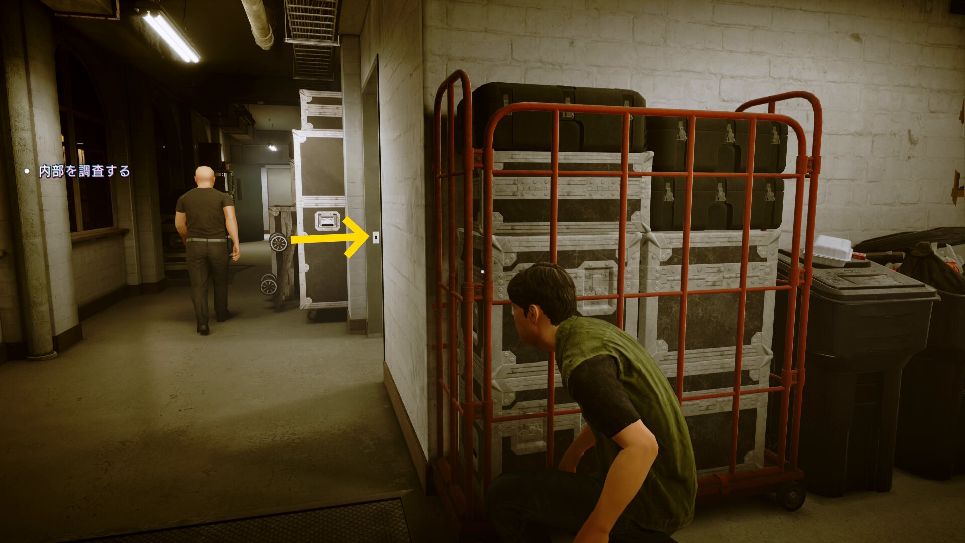 • 左前方奥に解錠されたドアがある。巡回するスタッフに気をつけながらドアを通過する