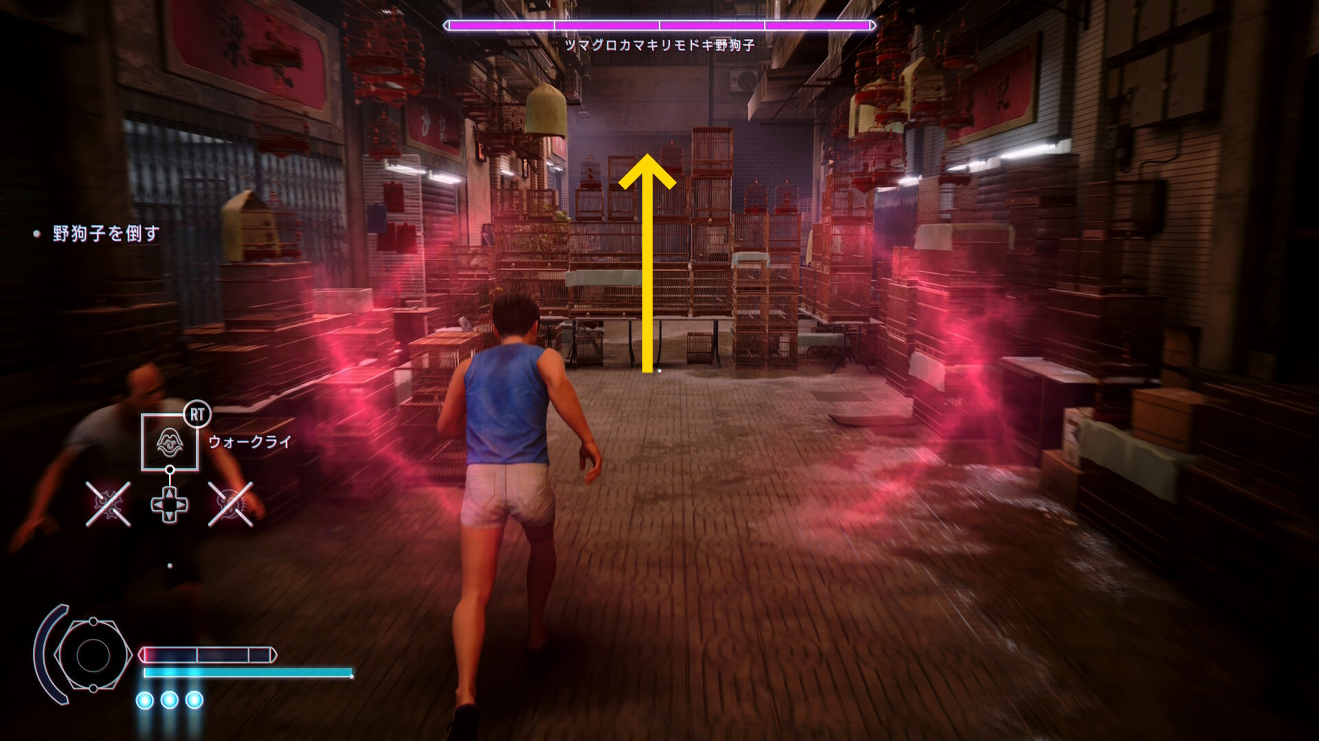 • ジュリーも一般人もいない状況で戦うのは危険なため、開幕したら左後ろにある数段の階段をのぼって路地に逃げていく(下画像矢印)