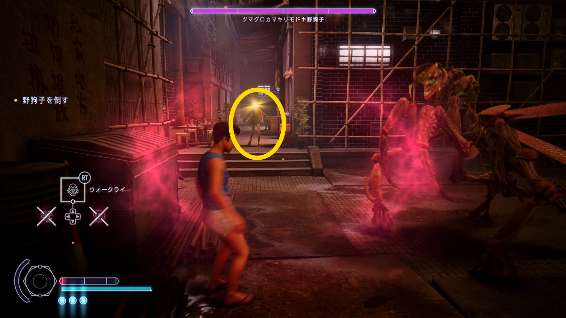 • 追跡していくと突然、野狗子視点のカットシーン