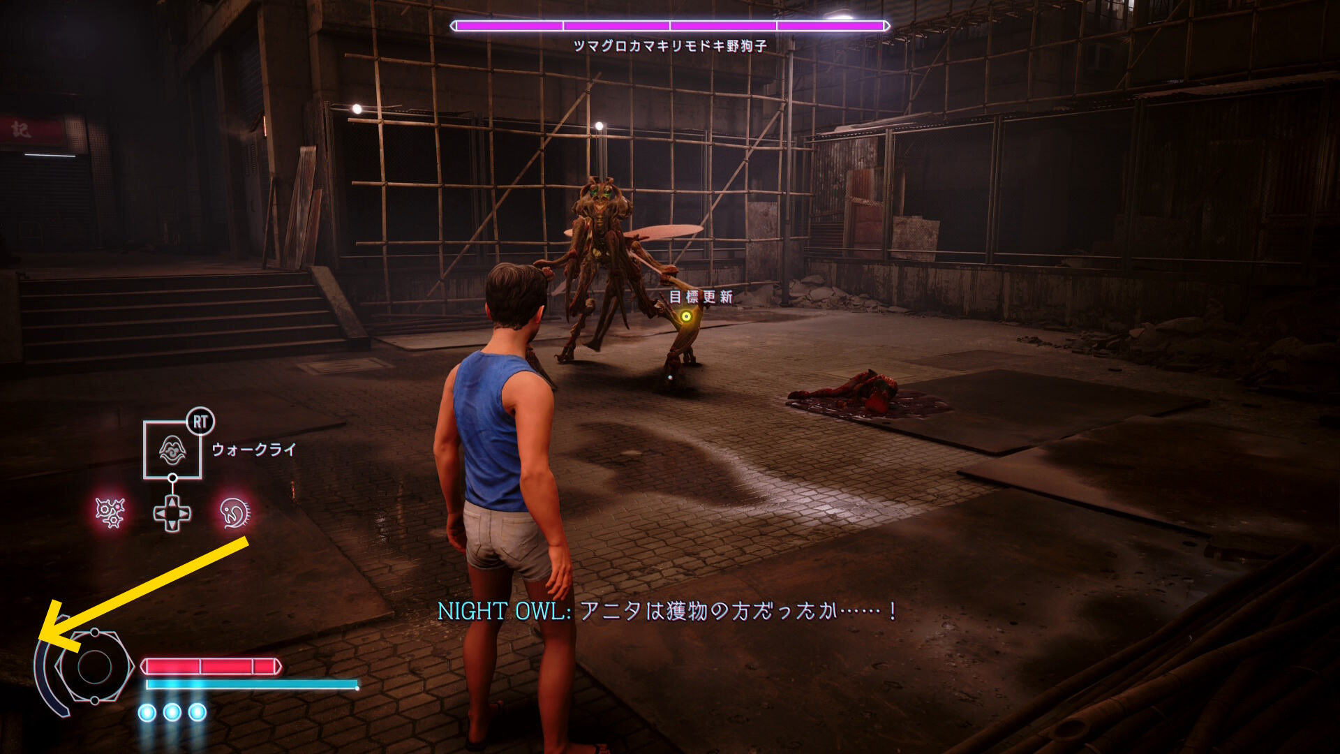 • 彼女に憑依して戦う or そのままロの字の路地を逃げながらブラッドリッパー、ブラッドクラッカーでダメージを与えるのもよい