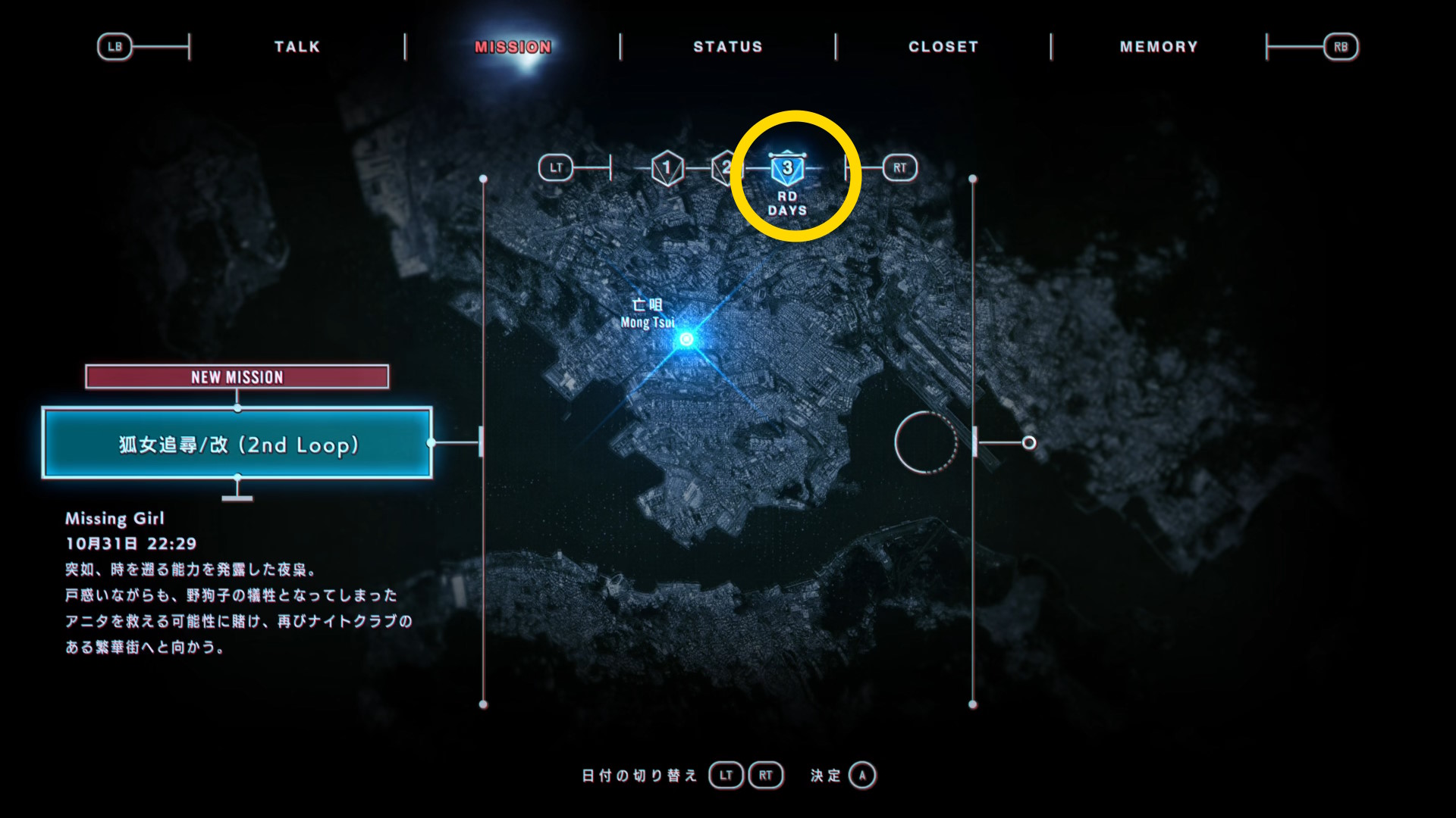 • ミッションは2つアンロックされており、どちらから進めても問題ないが、当サイトでは 3日目に出現しているミッション「狐女追尋/改善(2nd Loop)」から進める