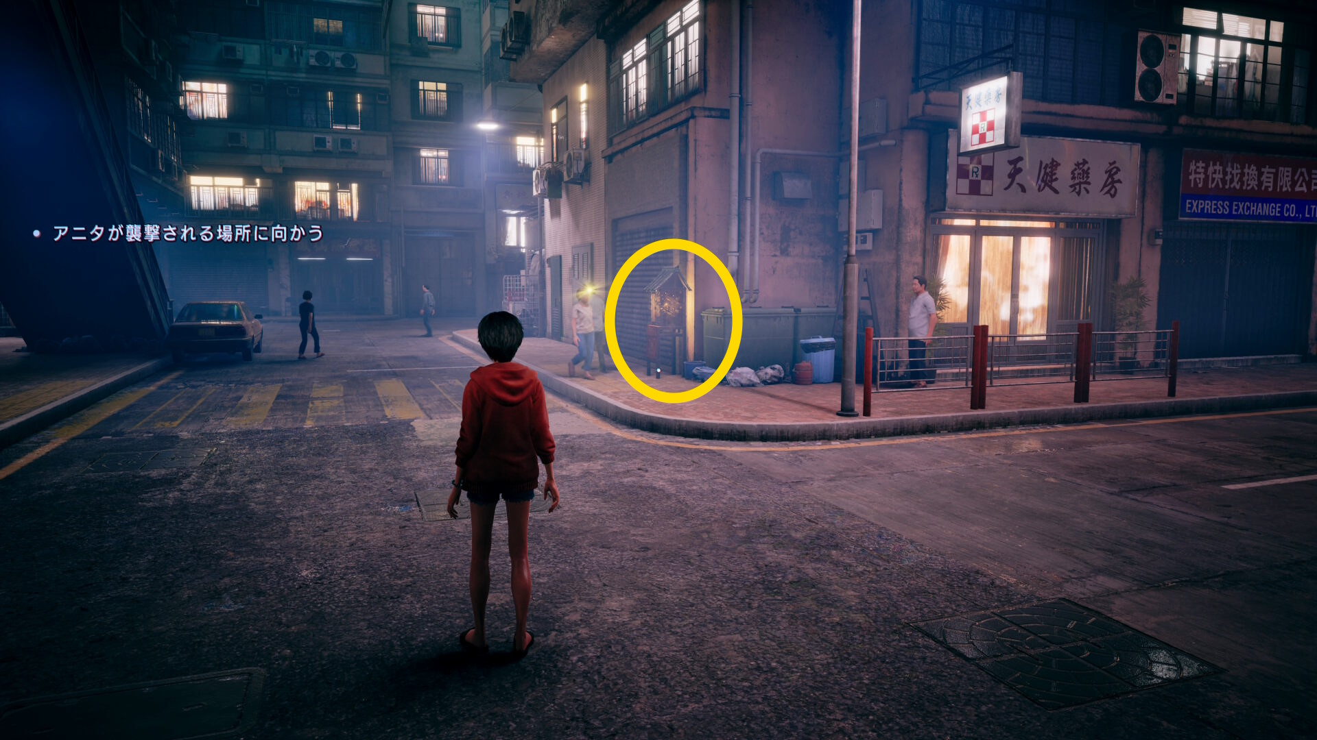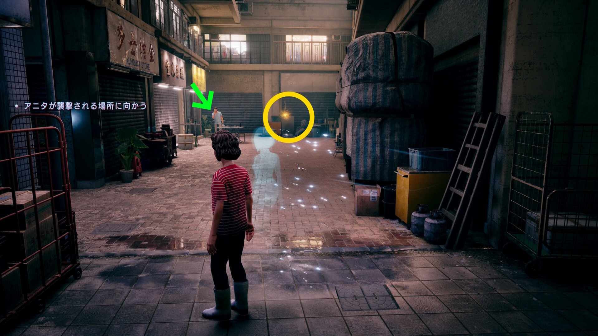 - あとはアニタの痕跡を追い、彼女が襲われている広場に着けばカットシーン