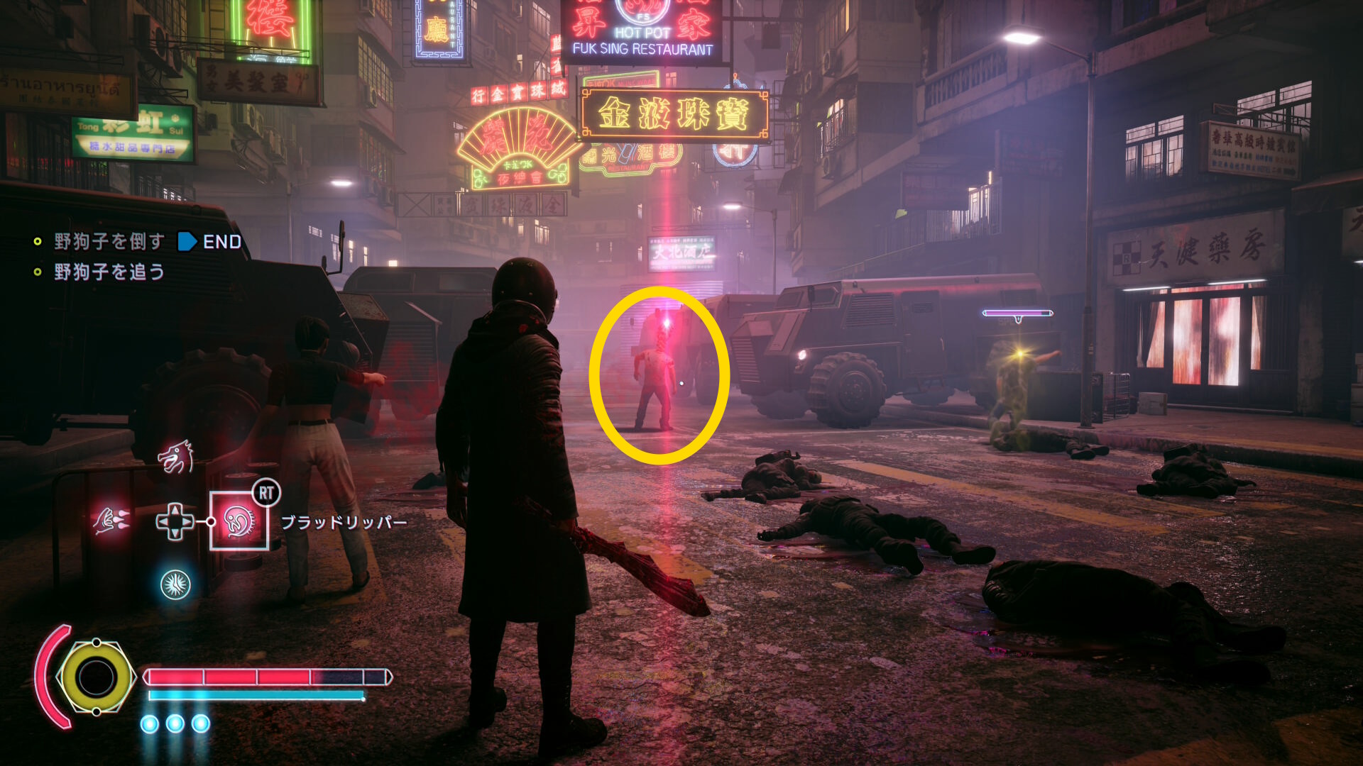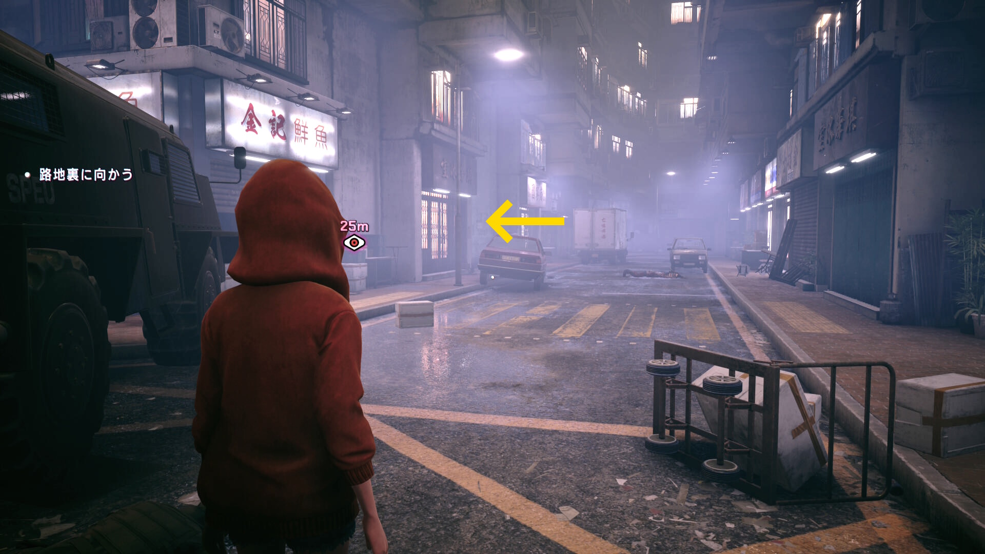 - カットシーン後、野狗子が飛び出してきた路地に向かう
