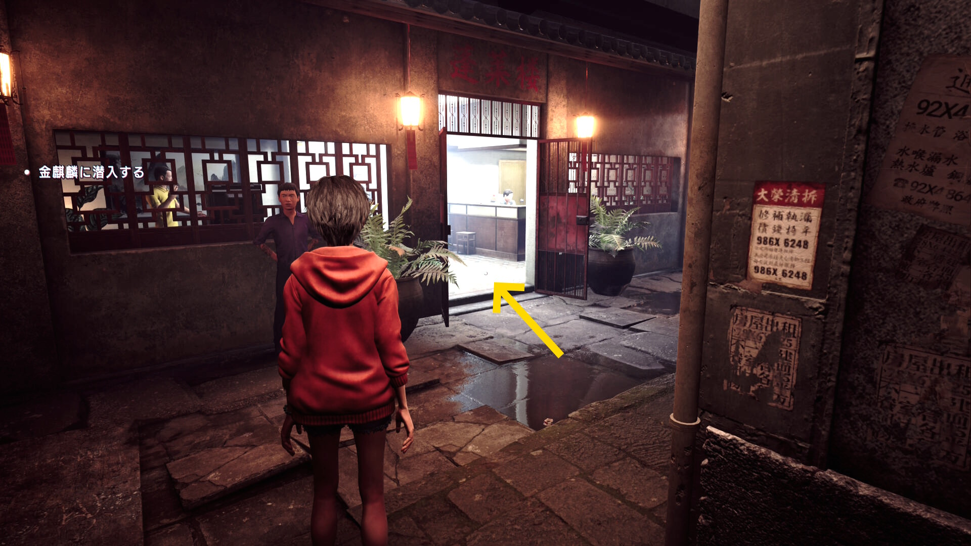 • 1階(壁の 1/F を確認)におりたら、正面奥の娼婦に話しかけるとカットシーン