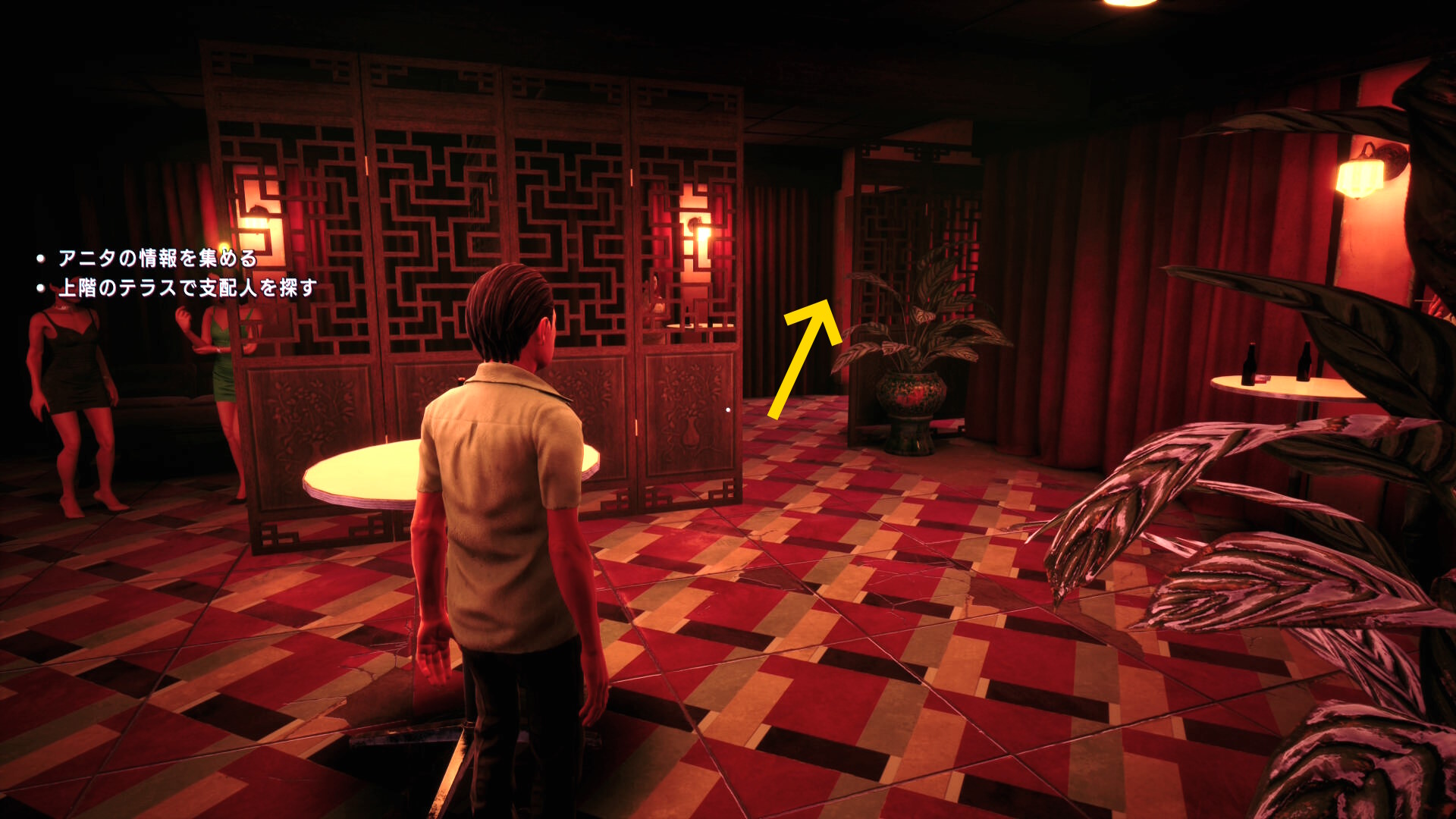 • ラウンジに入ったら左を向き、2人組の娼婦に話しかける