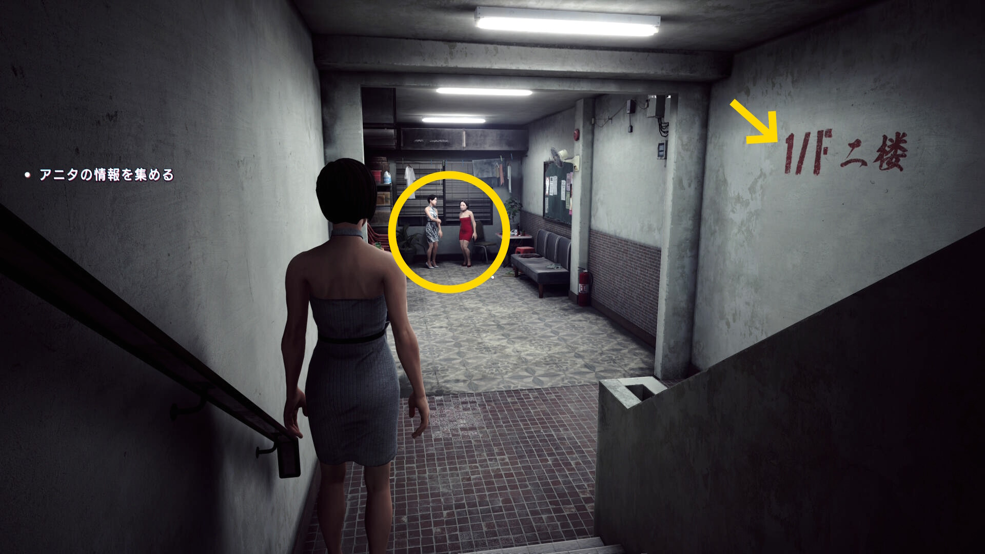 • 立っている娼婦と会話してアニタは下階にいることが判明する
