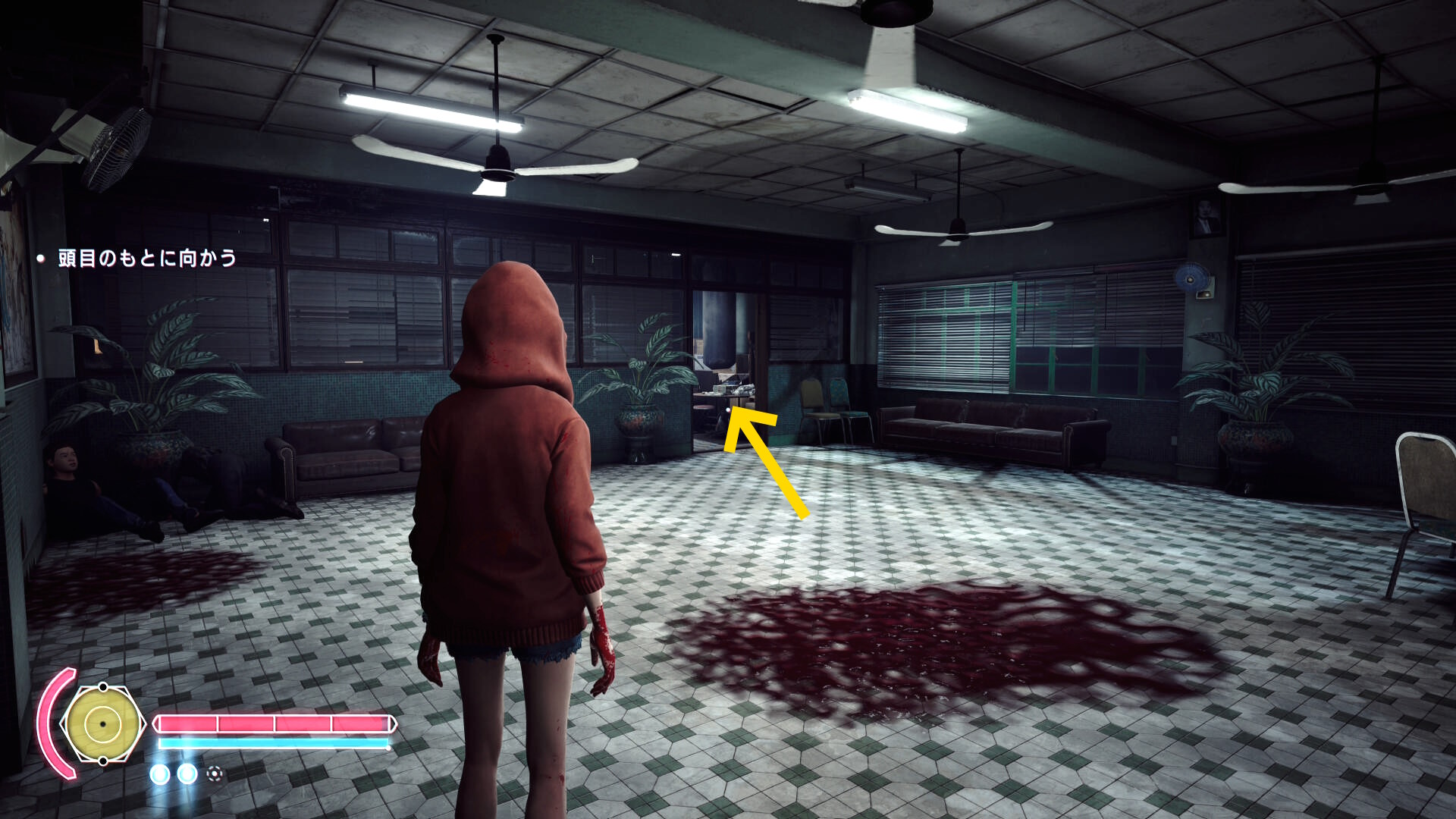 • 戦闘後、血溜まりで HP を回復しておくとよい( RB 長押し)