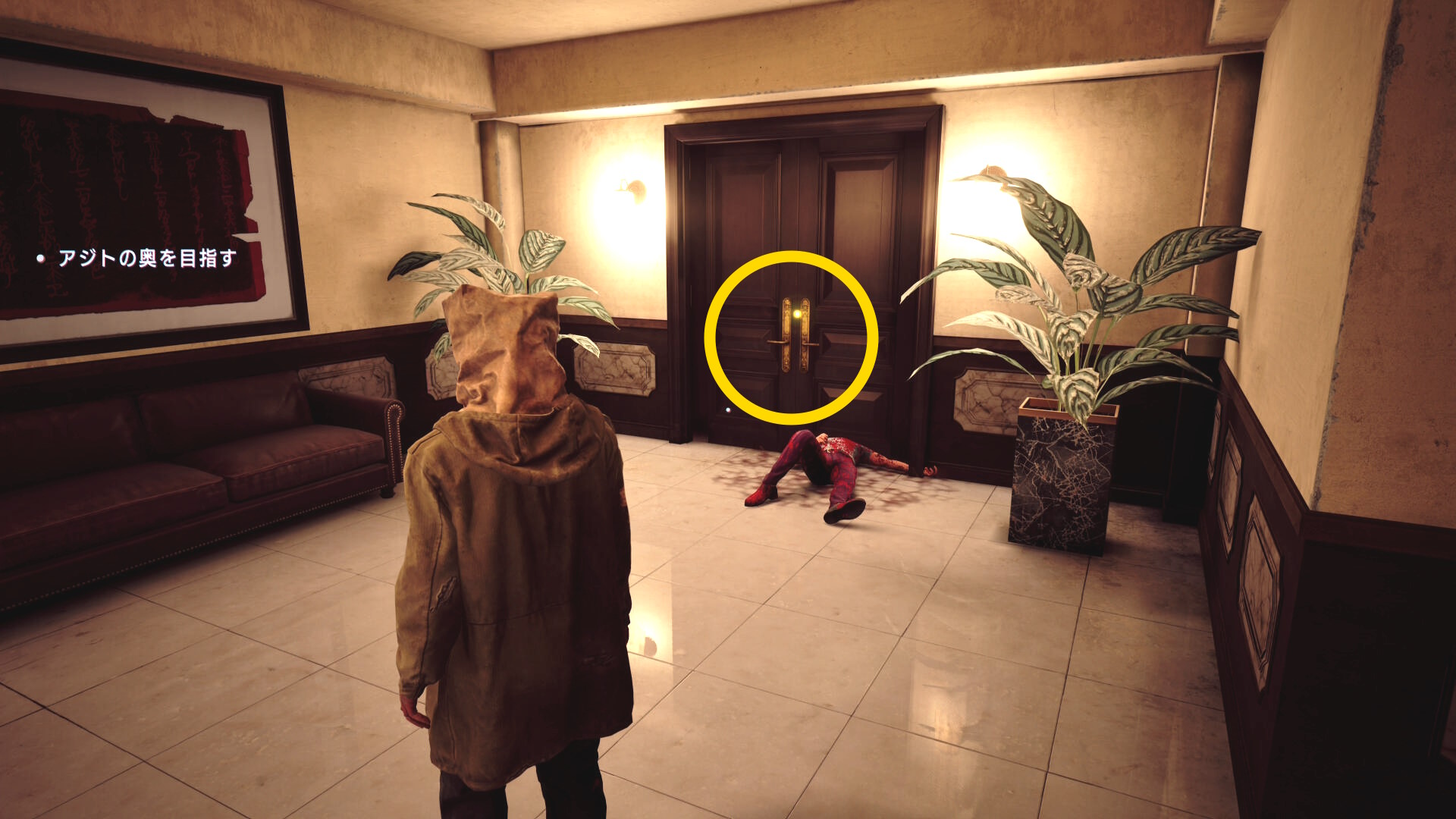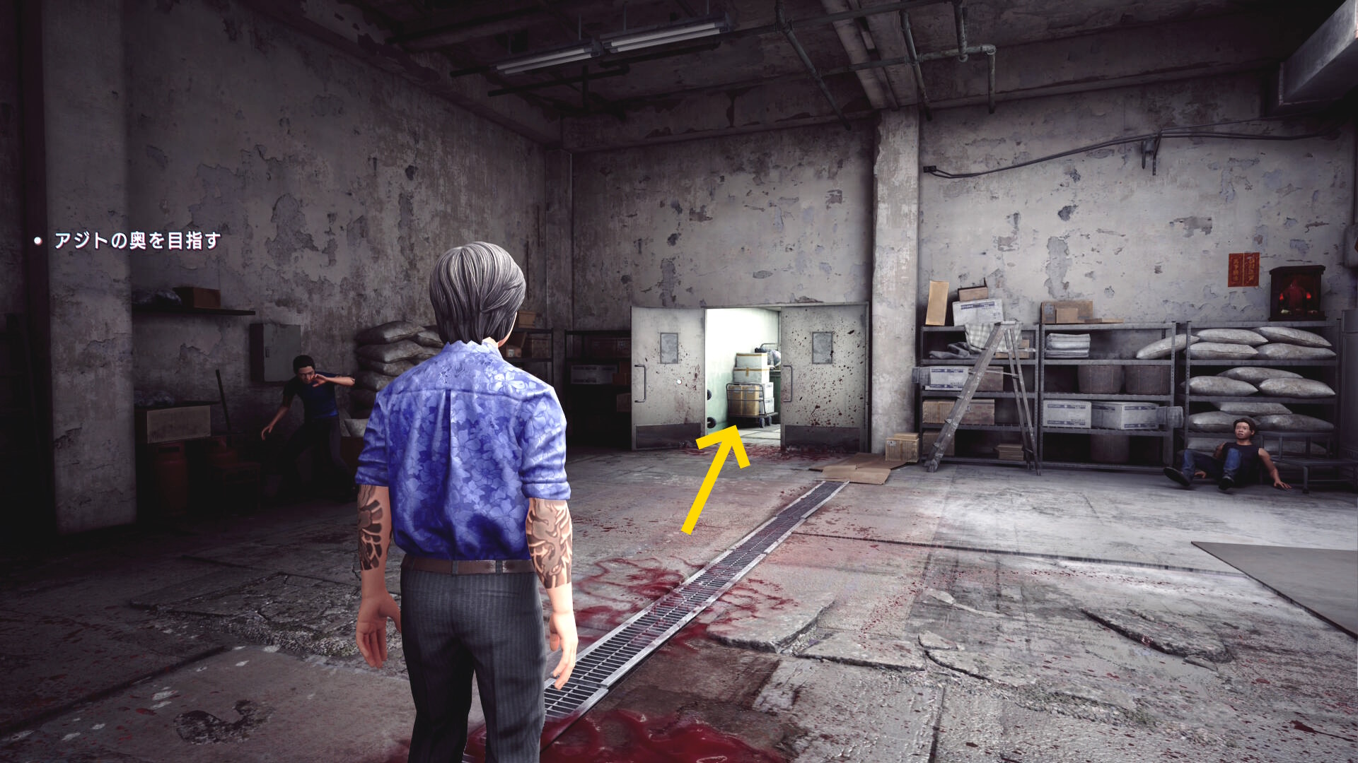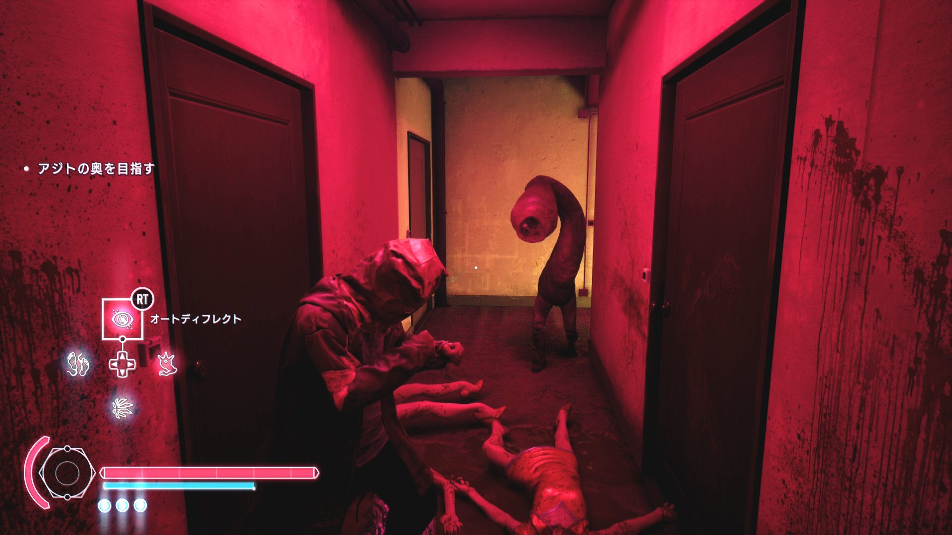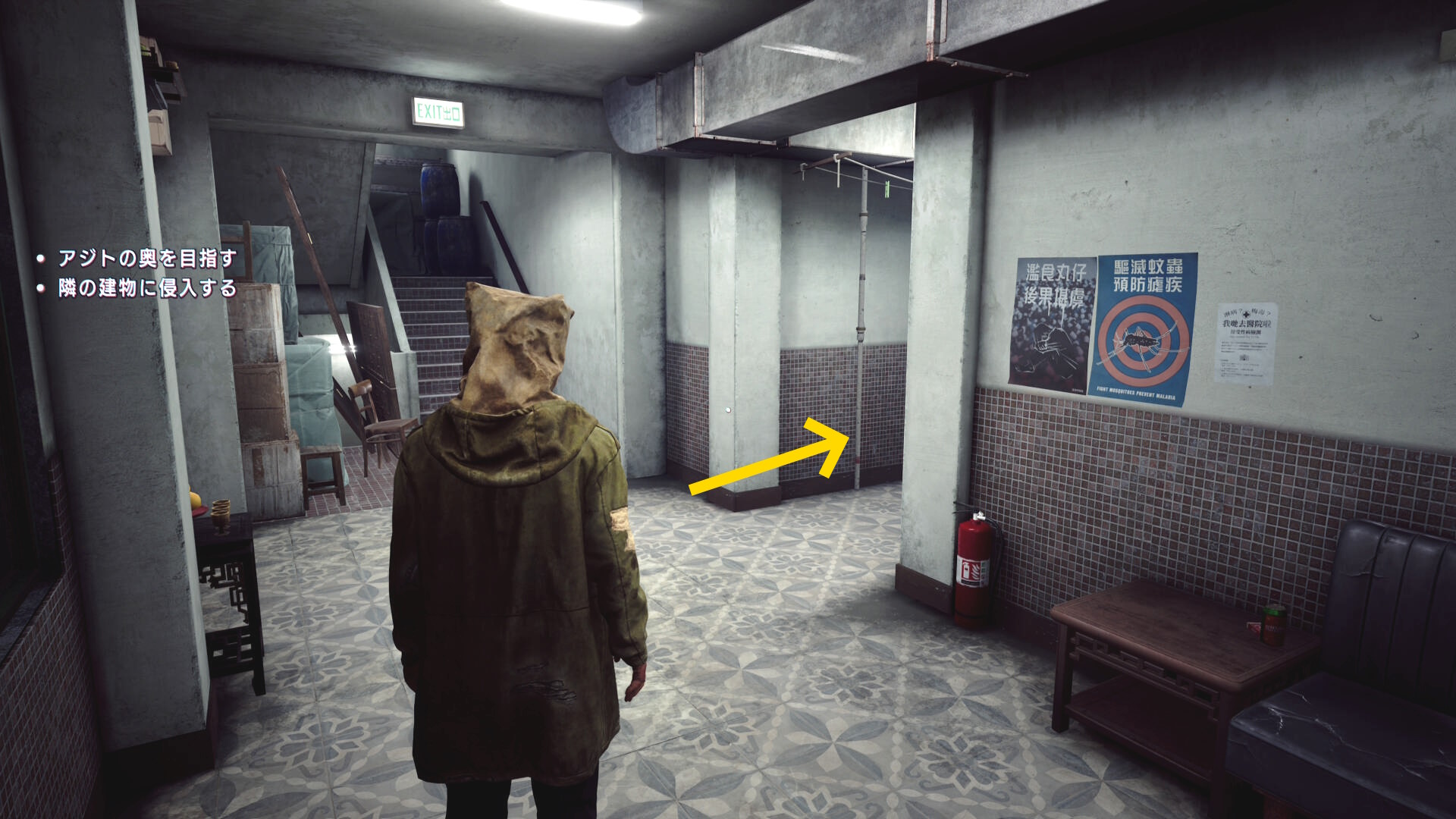 • 階段を下りていくと建物入口に死体が転がっている