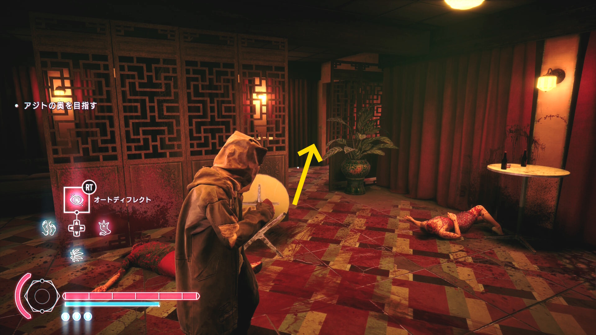 • 戦闘後、左奥の開口部からラウンジを出る