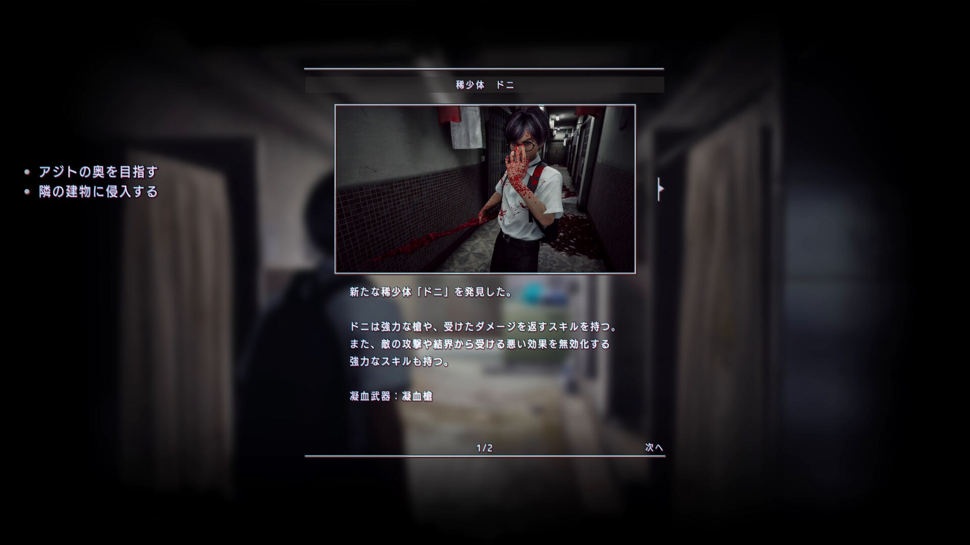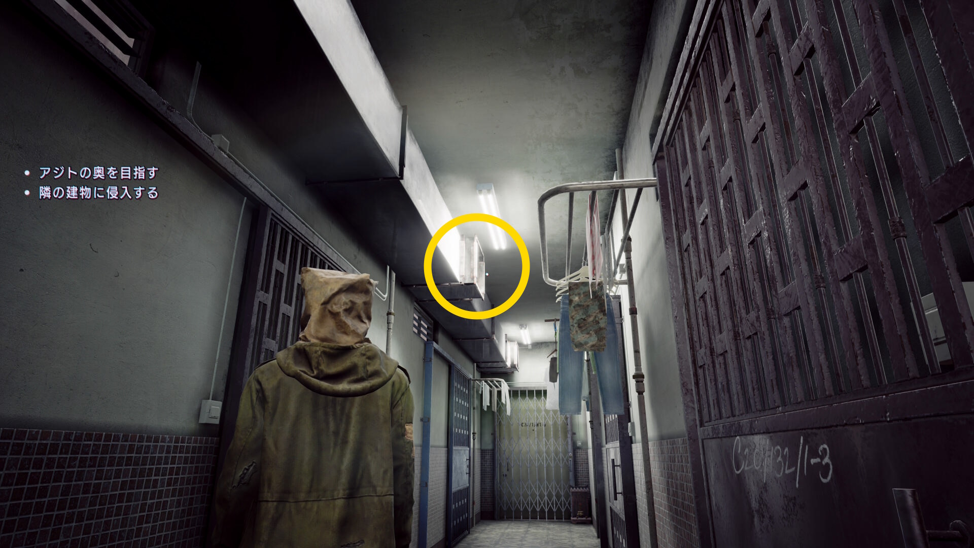 • 向こう側に移動し、右の凹みにいる生存者に憑依してから 憑鬼の記憶(11/36)を回収