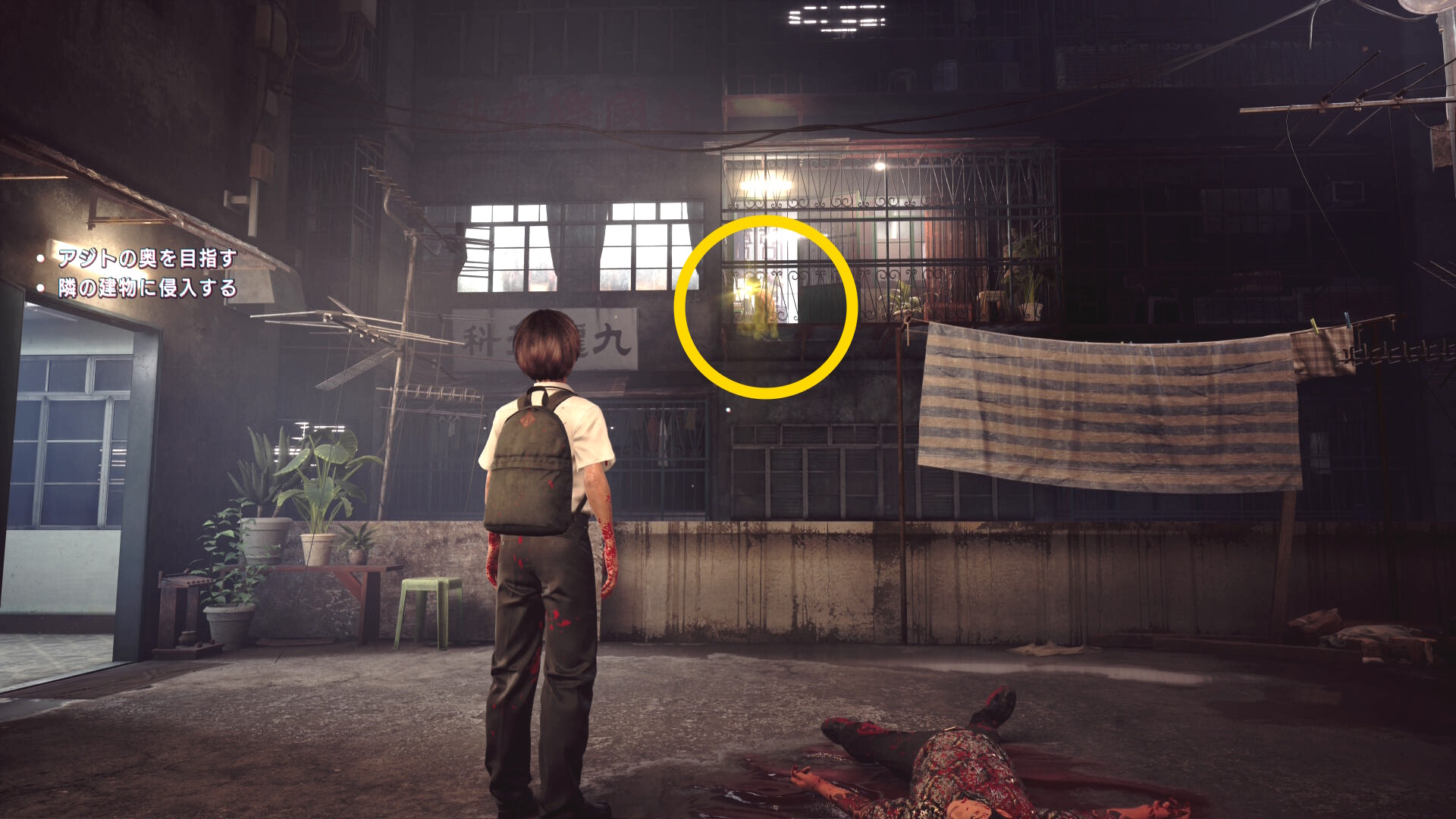 • 2箇所ブラッドジャンプしたあと、ベランダに人が見えるので憑依