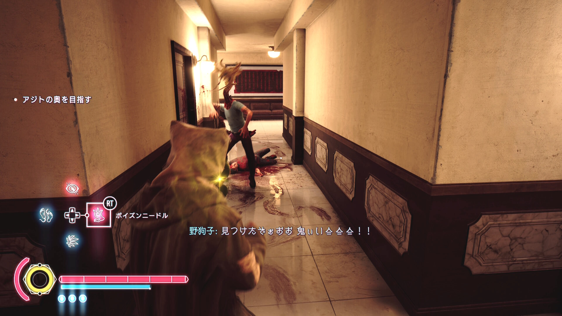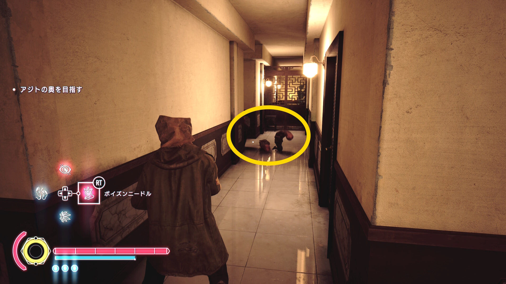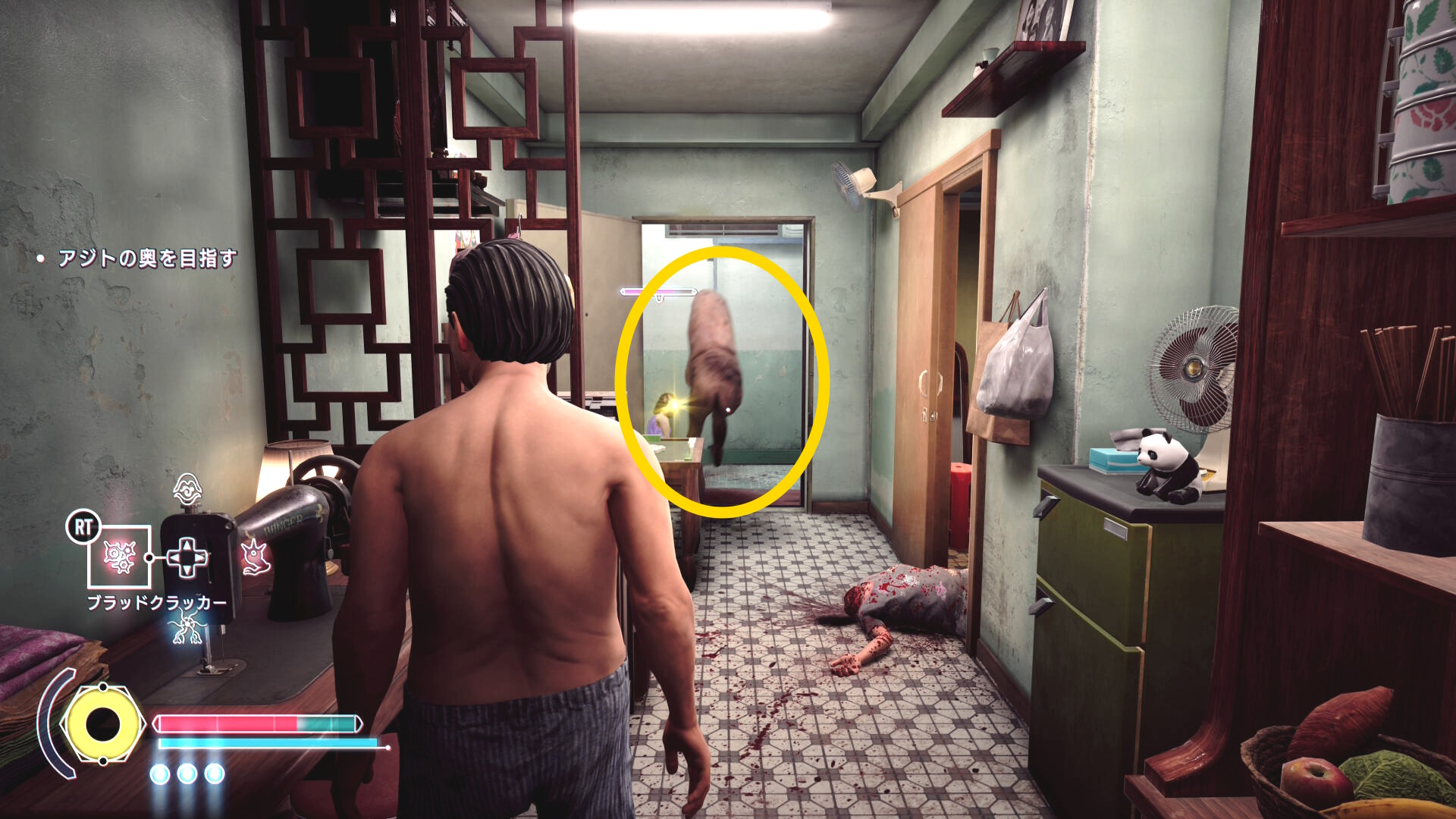 • エド(もしくはアニタ)に憑依しなおし、幼体が飛び出してきた廊下を進むと奥から野狗子が1体が襲ってくる