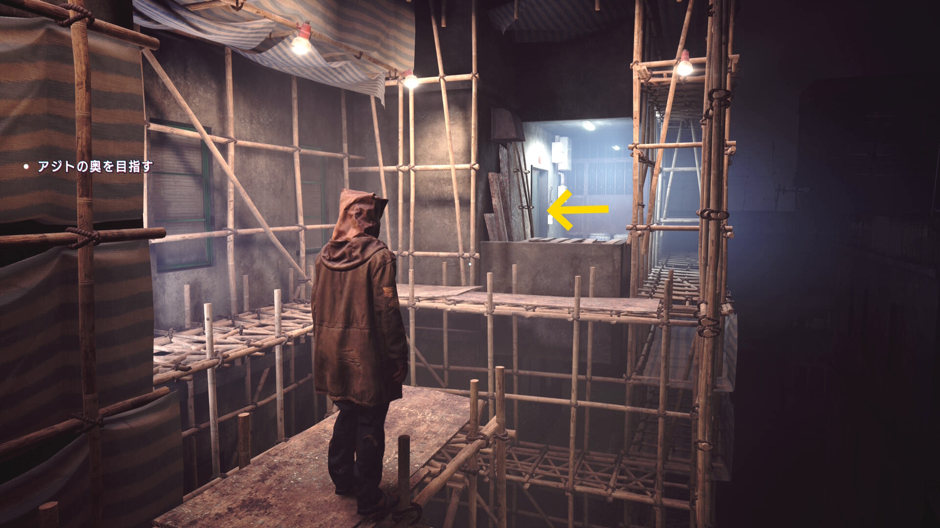 • 建設現場の足場を移動して、その先の建物に入る
