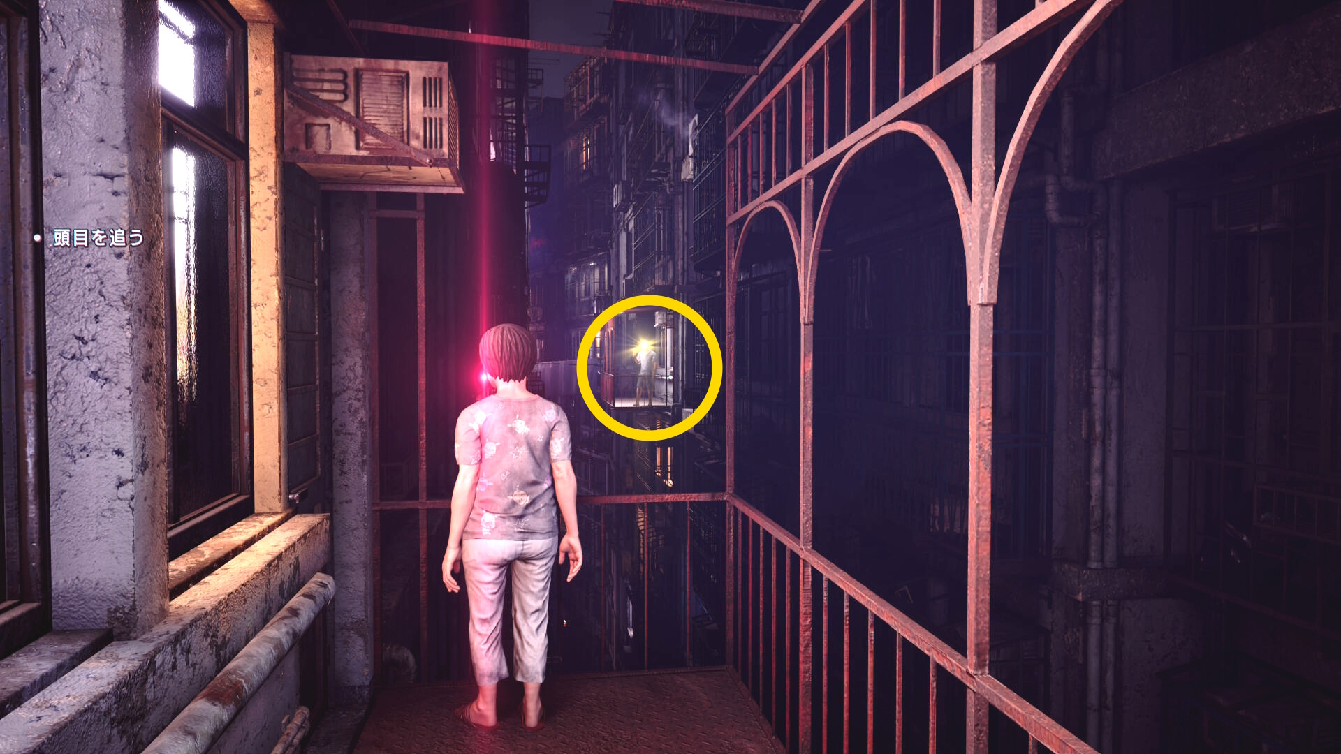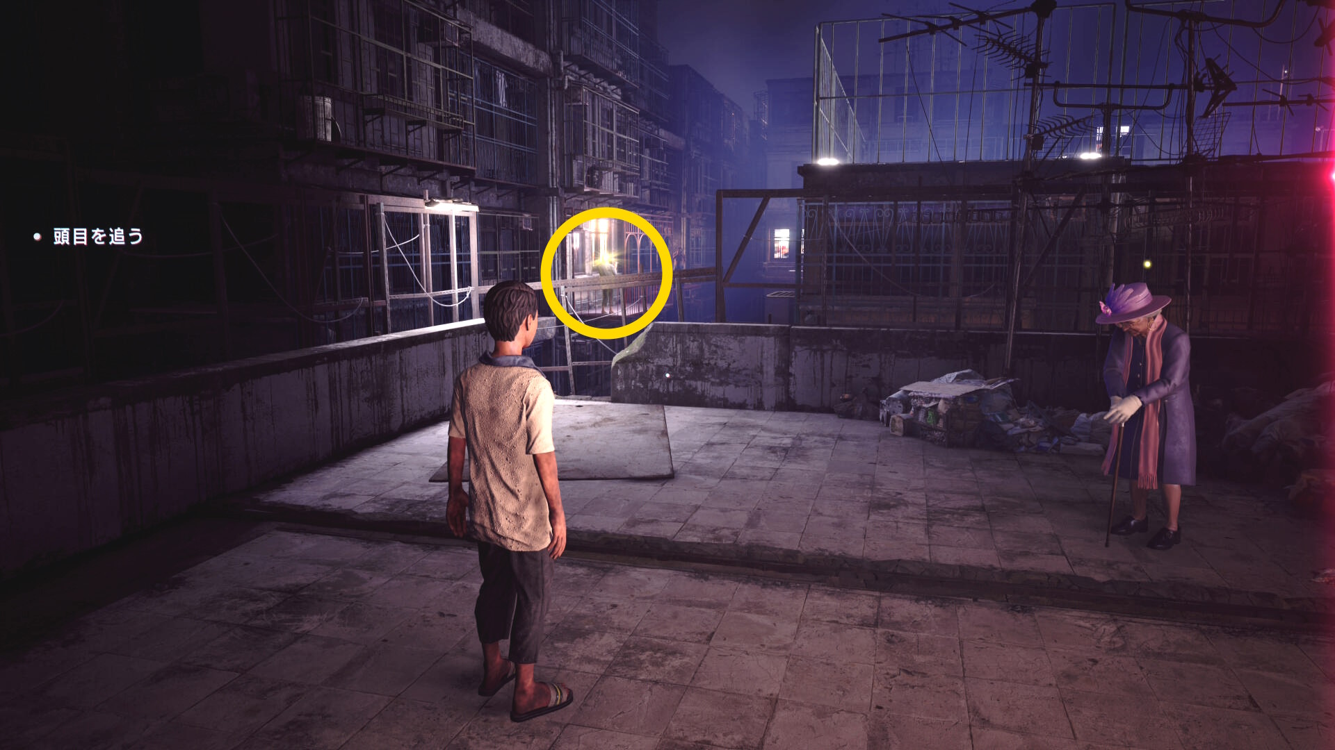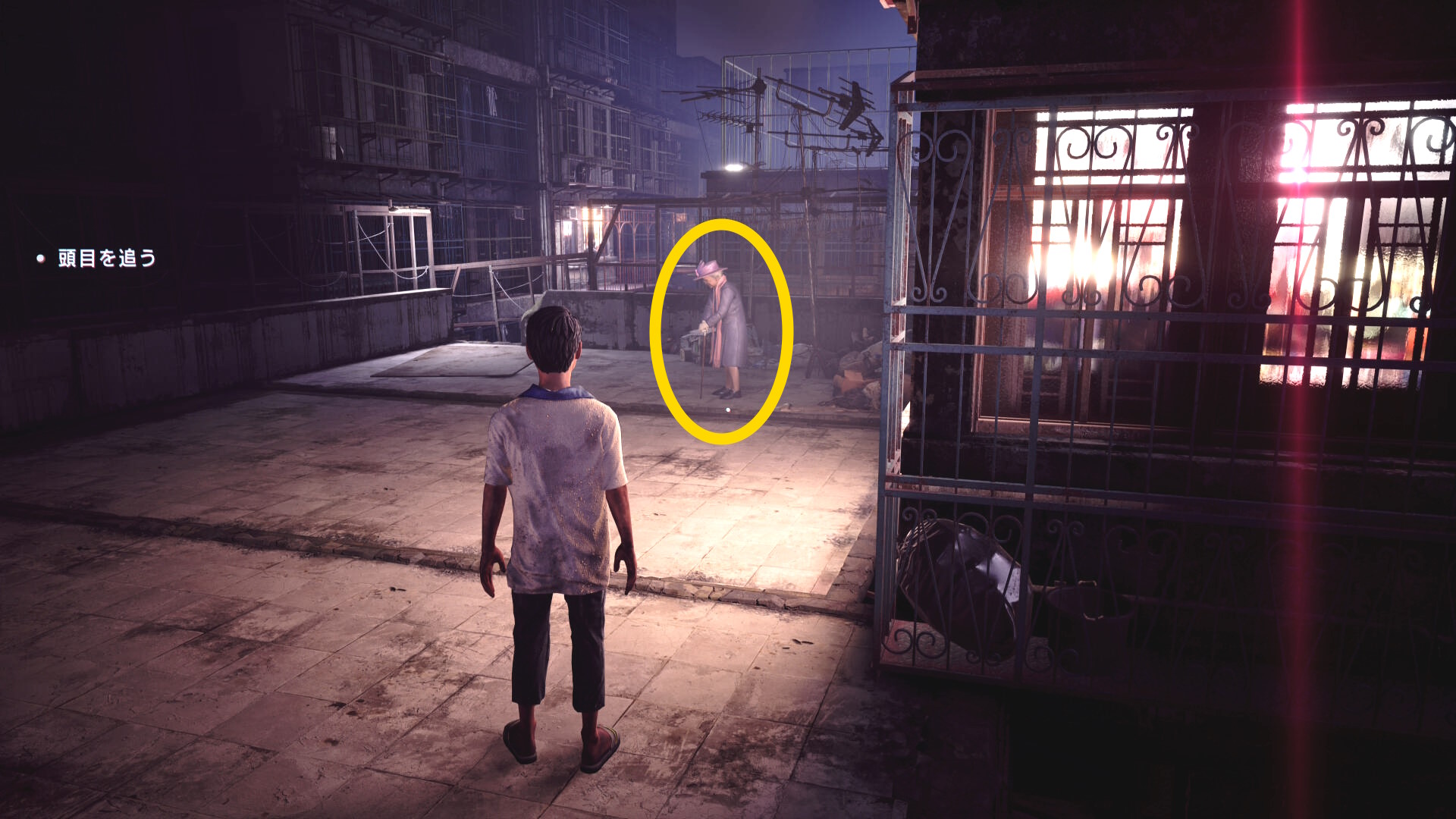 • 謎の老婦人と会話後、左奥のベランダにいる人に憑依