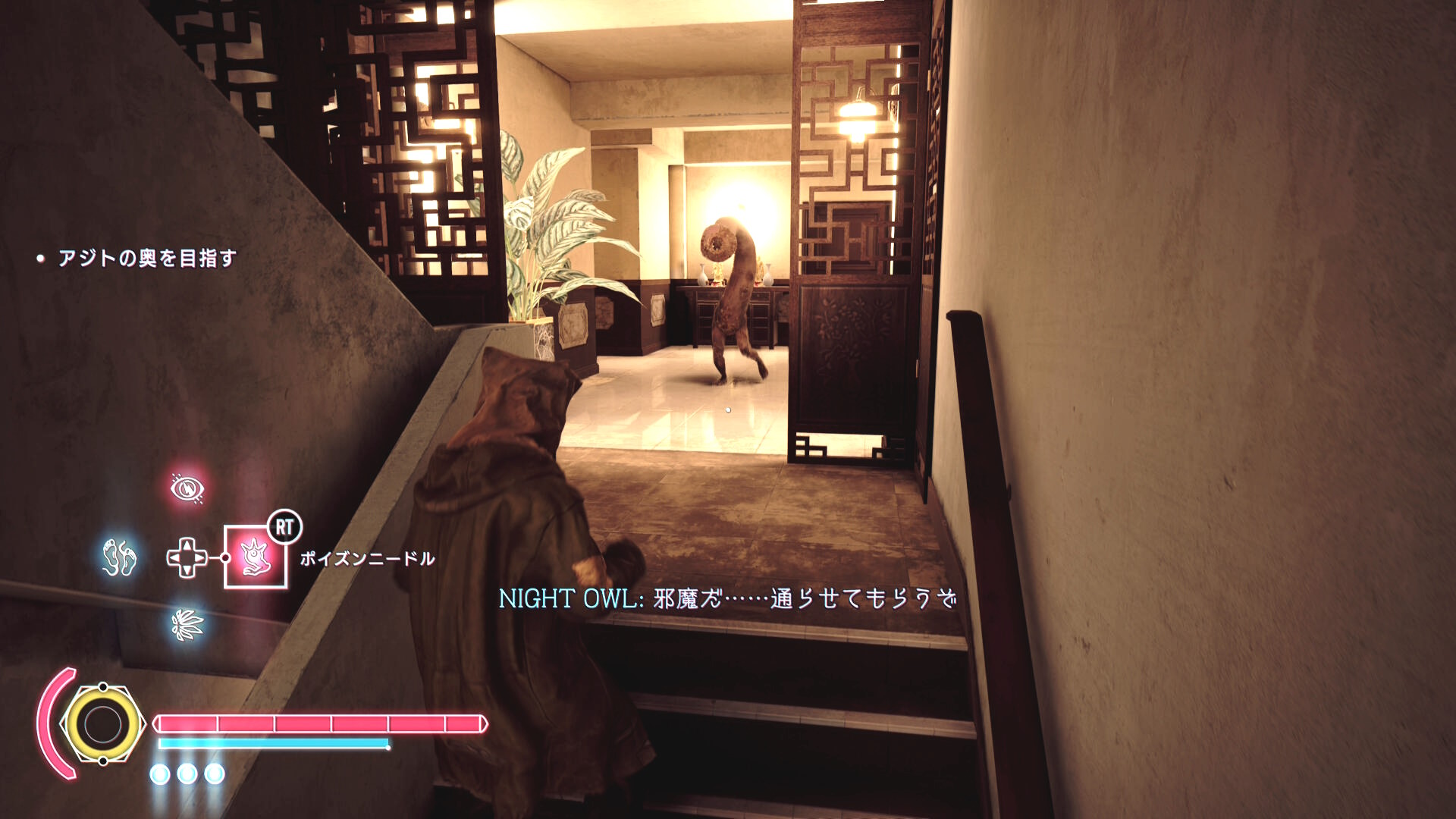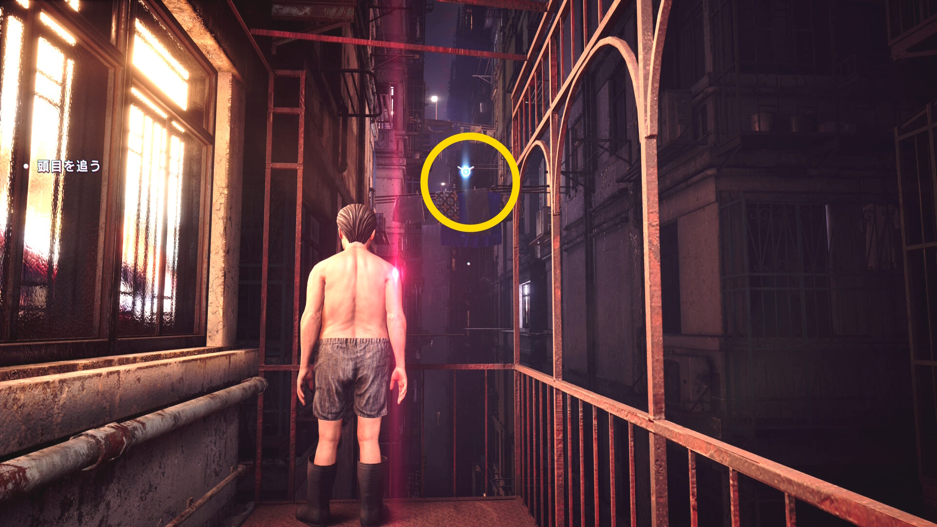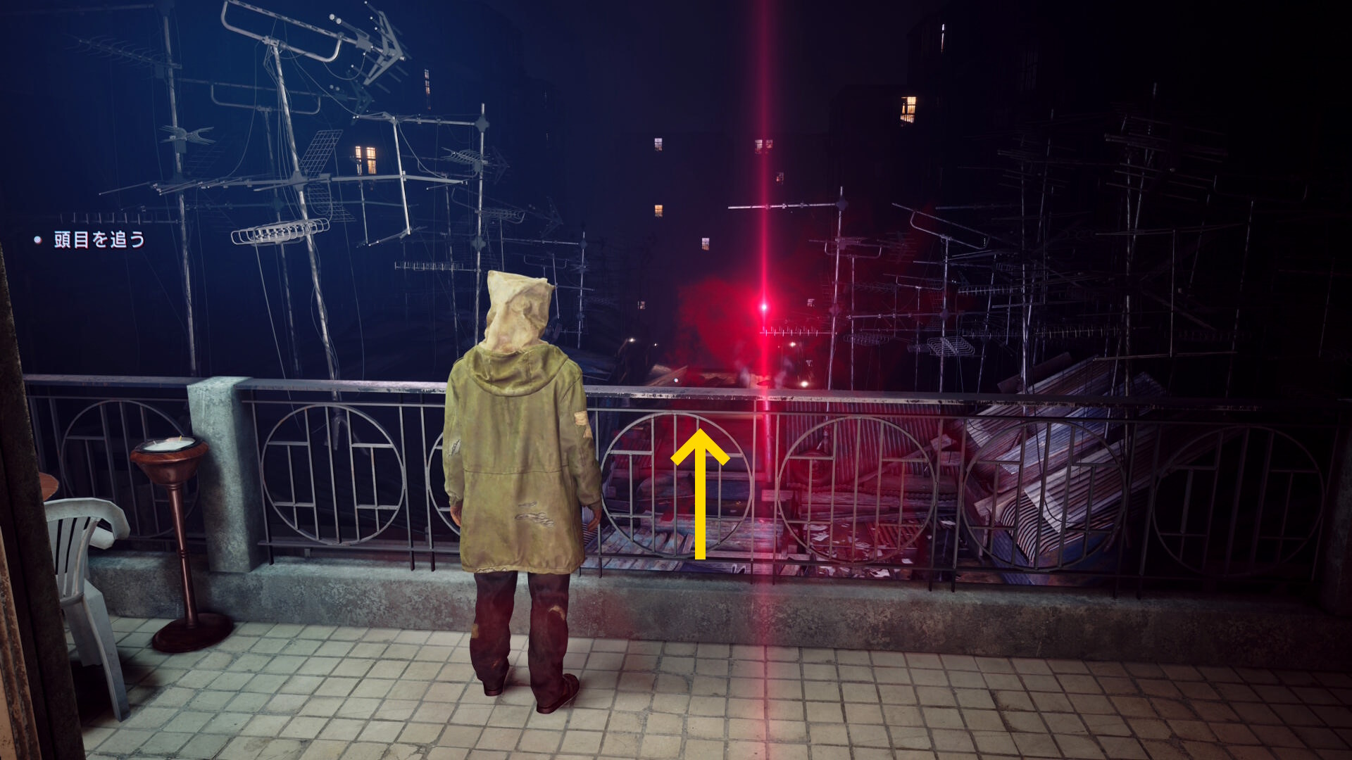 • 謎の老婦人と会話後、左奥のベランダにいる人に憑依
