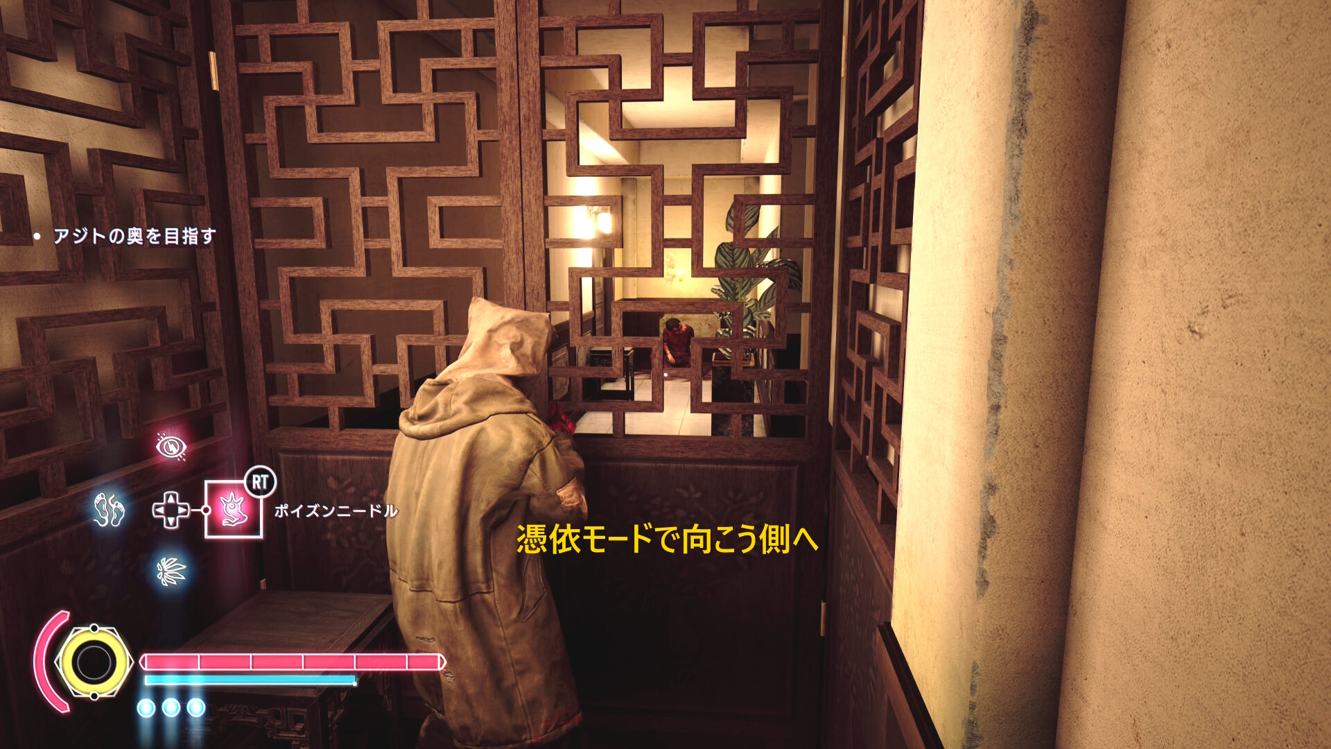 • 左前方に進み、眼下の人に憑依する