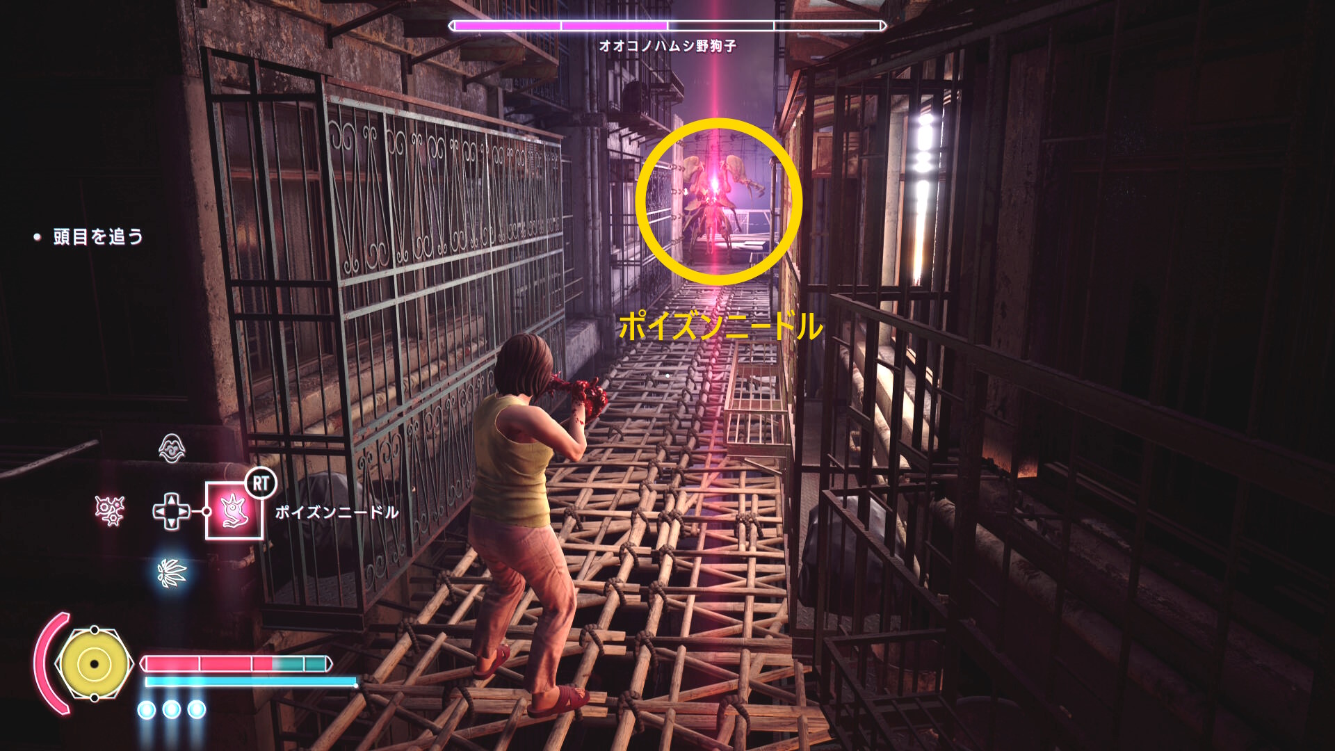 • この人の HP がギリギリになるまでポイズンニードルを撃っておく