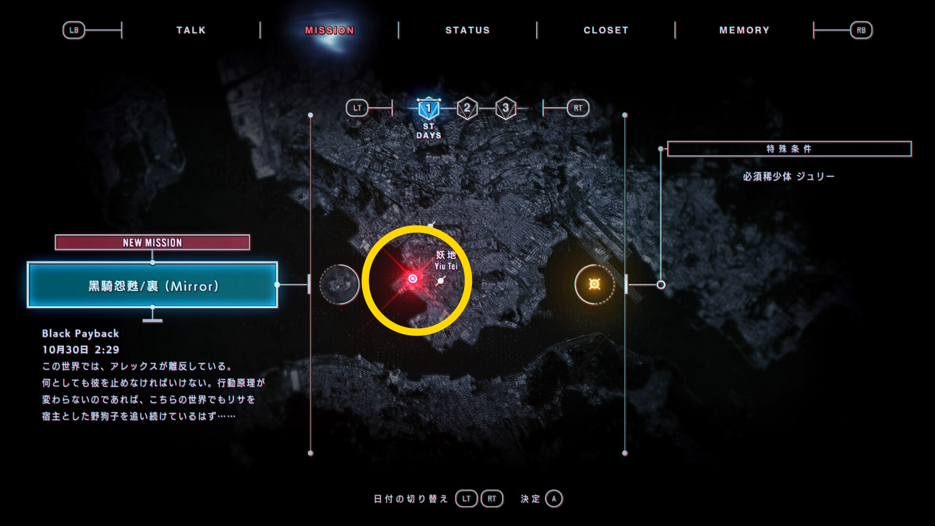 • 次のミッションは1日目の「黒騎怨甦/裏(Mirror)」をプレイする