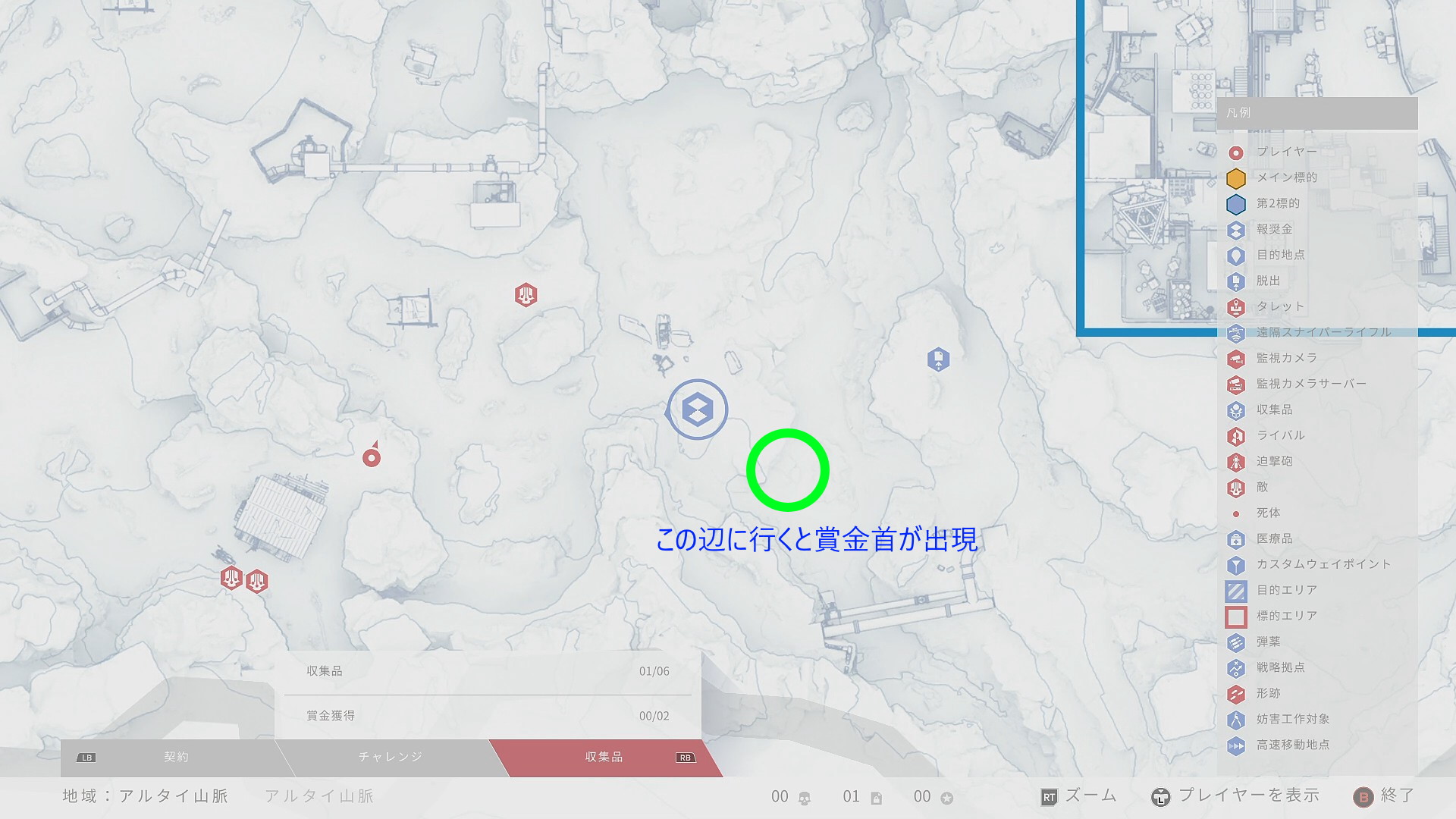 - マップを開くと懸賞金アイコンが出現している (脱出ポイントも出現している)