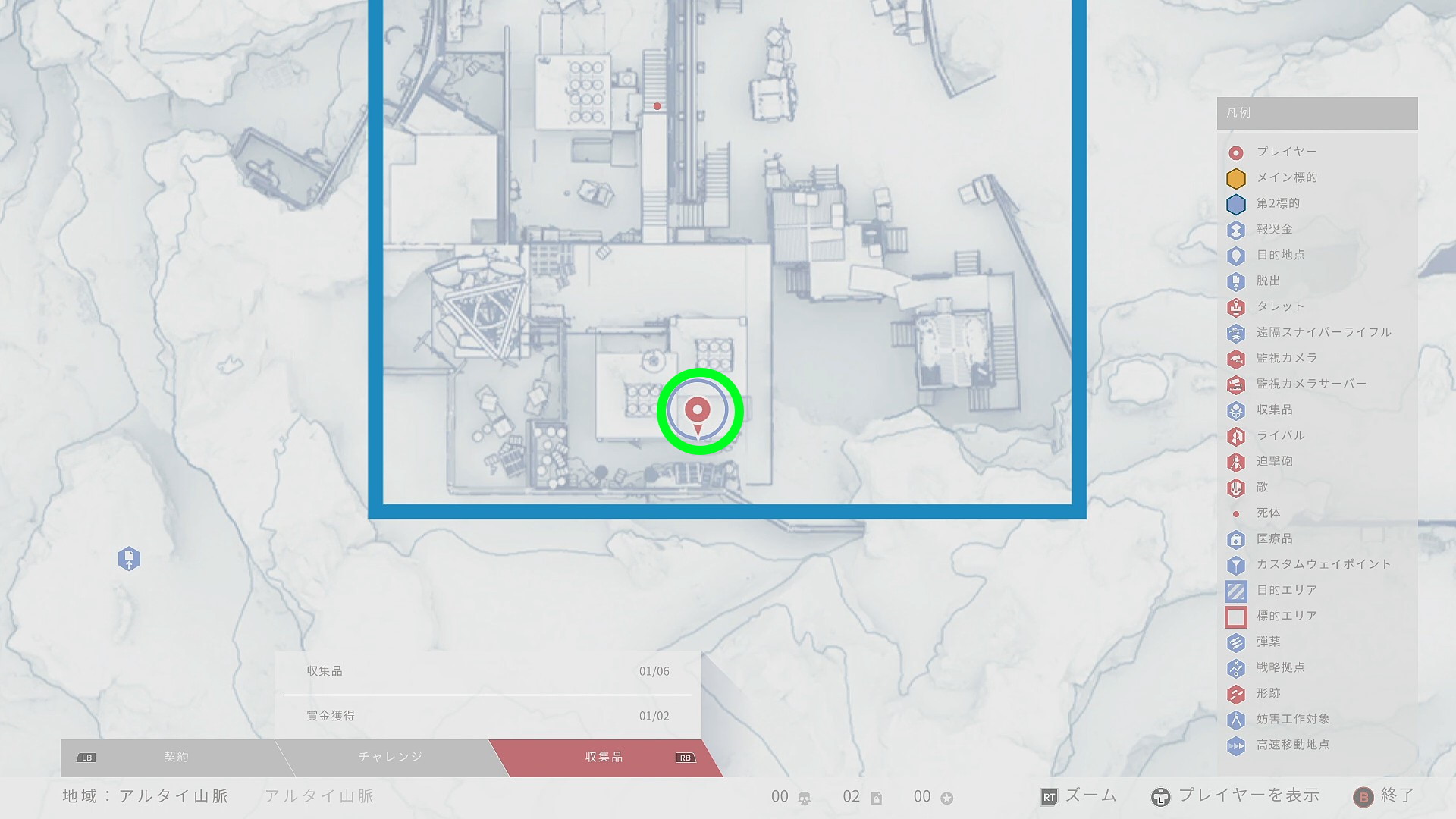 - 施設から出て、マップ北東の収集品へ向かう