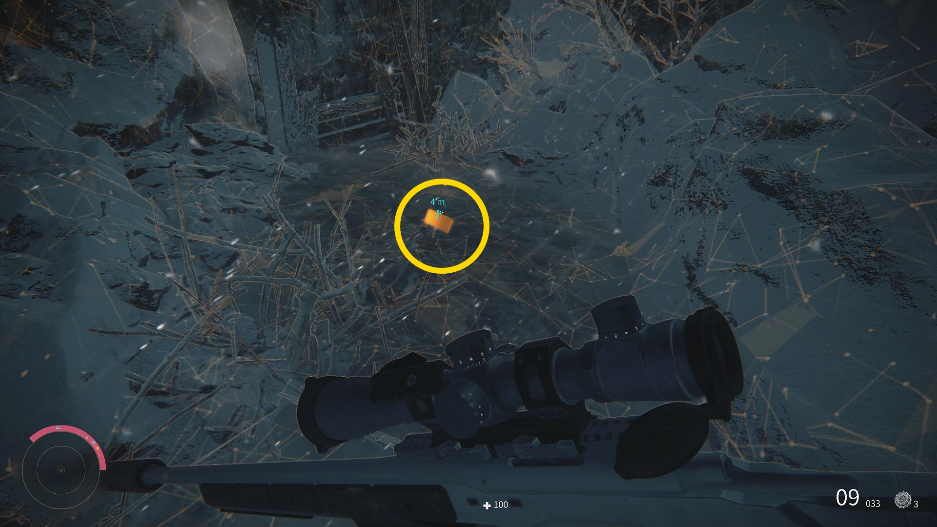 - スナイパーライフル>Blower R93>スコープ (1番高いやつ)