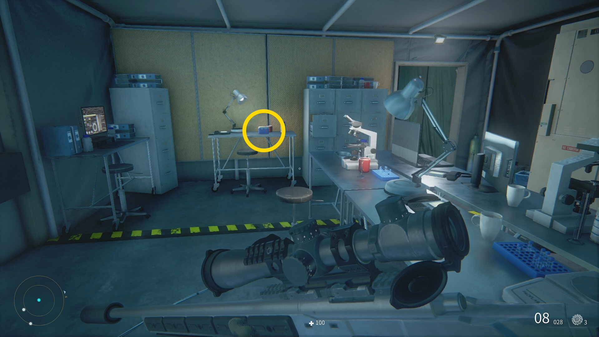 - なお、ウイルスサンプルの場所もテント内を移動する仕様のため、下画像の場所に無い場合あり