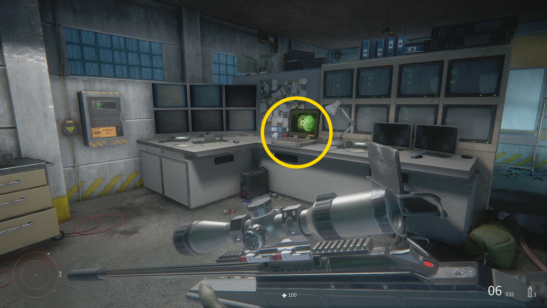 - 頭上のコントロールルームにのぼり、中にいる2人の敵を倒したらコンピューターをハッキングすると「契約4:すべての試験結果を破棄せよ」完了