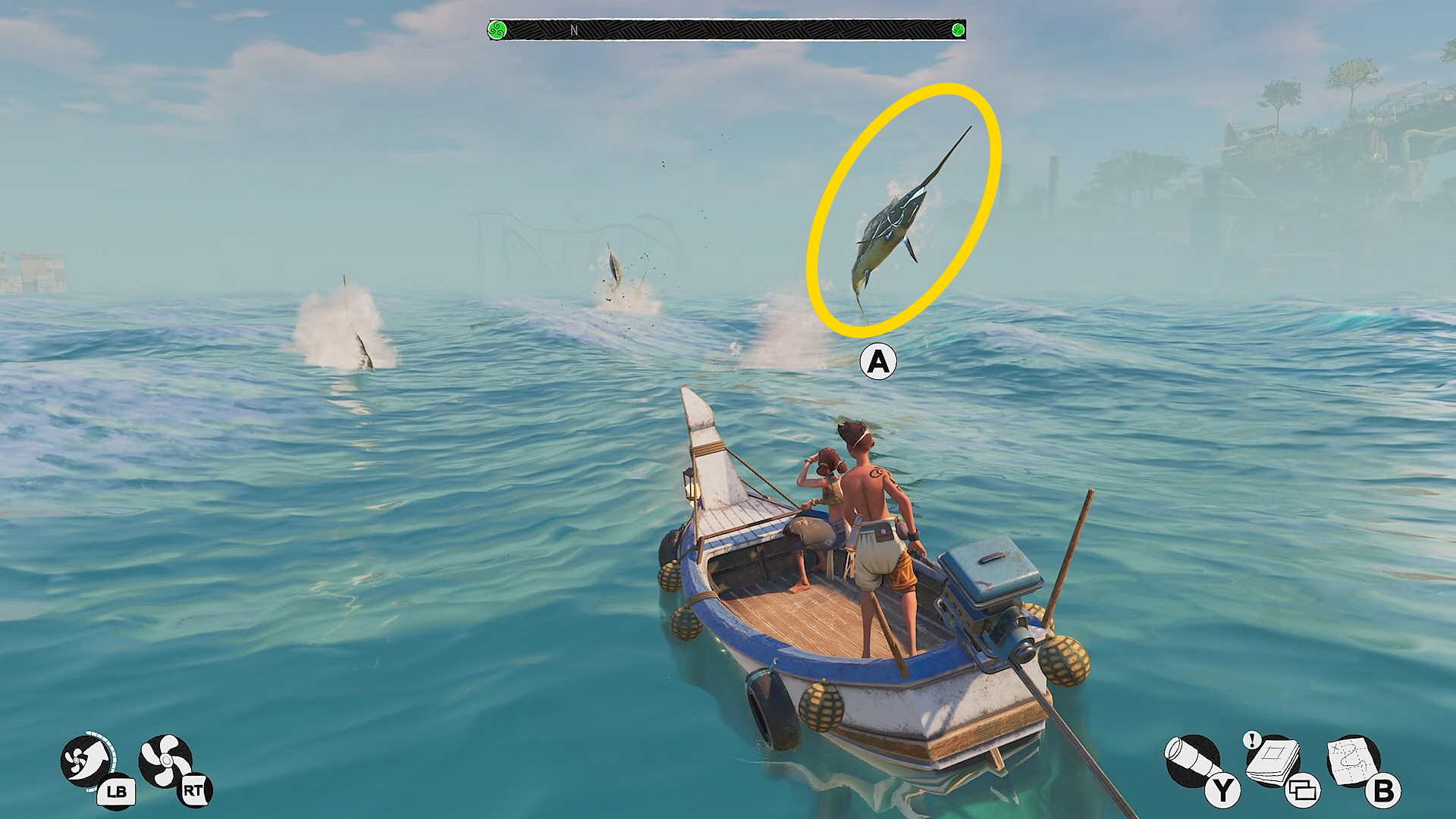 - シャチはレアだが、この場所でセーブ ⇒ ロードして少し待っていれば出現しやすい(1,2分くらいは待機&様子見しましょう)