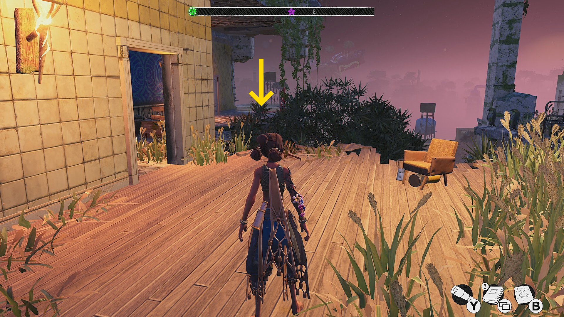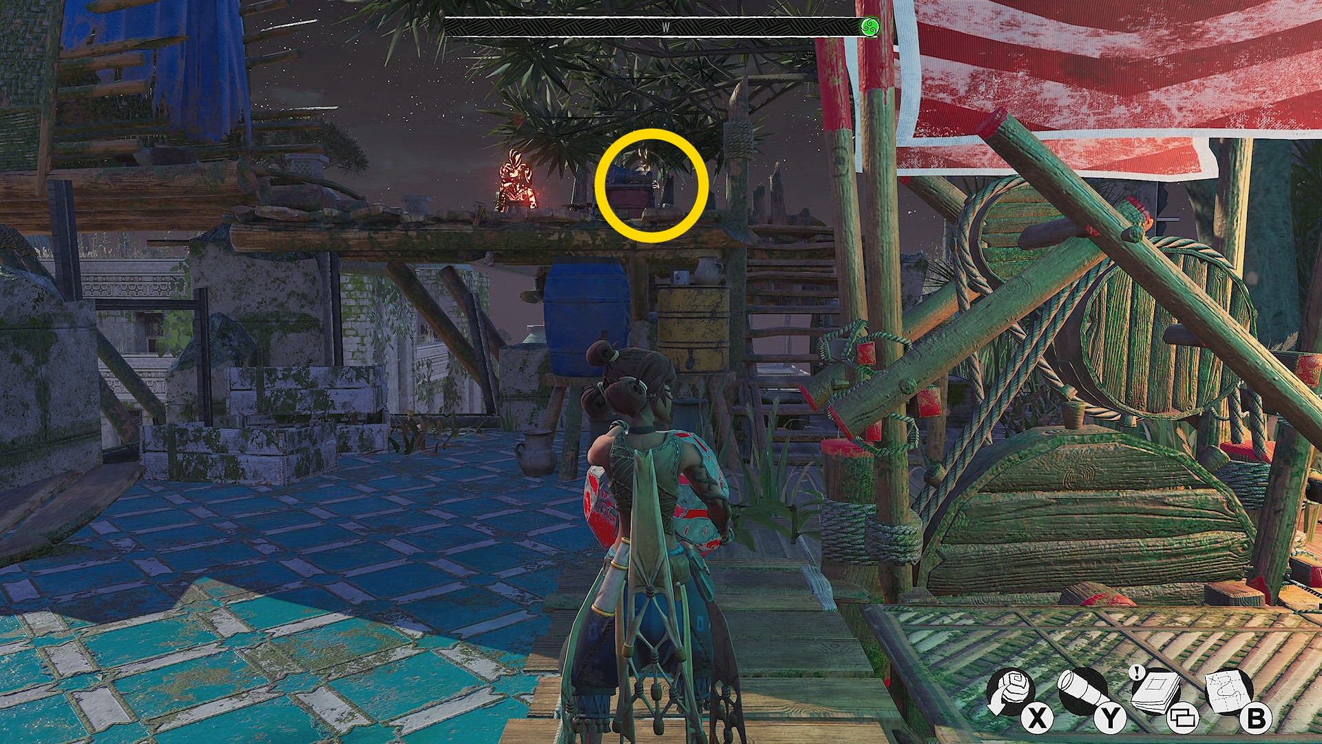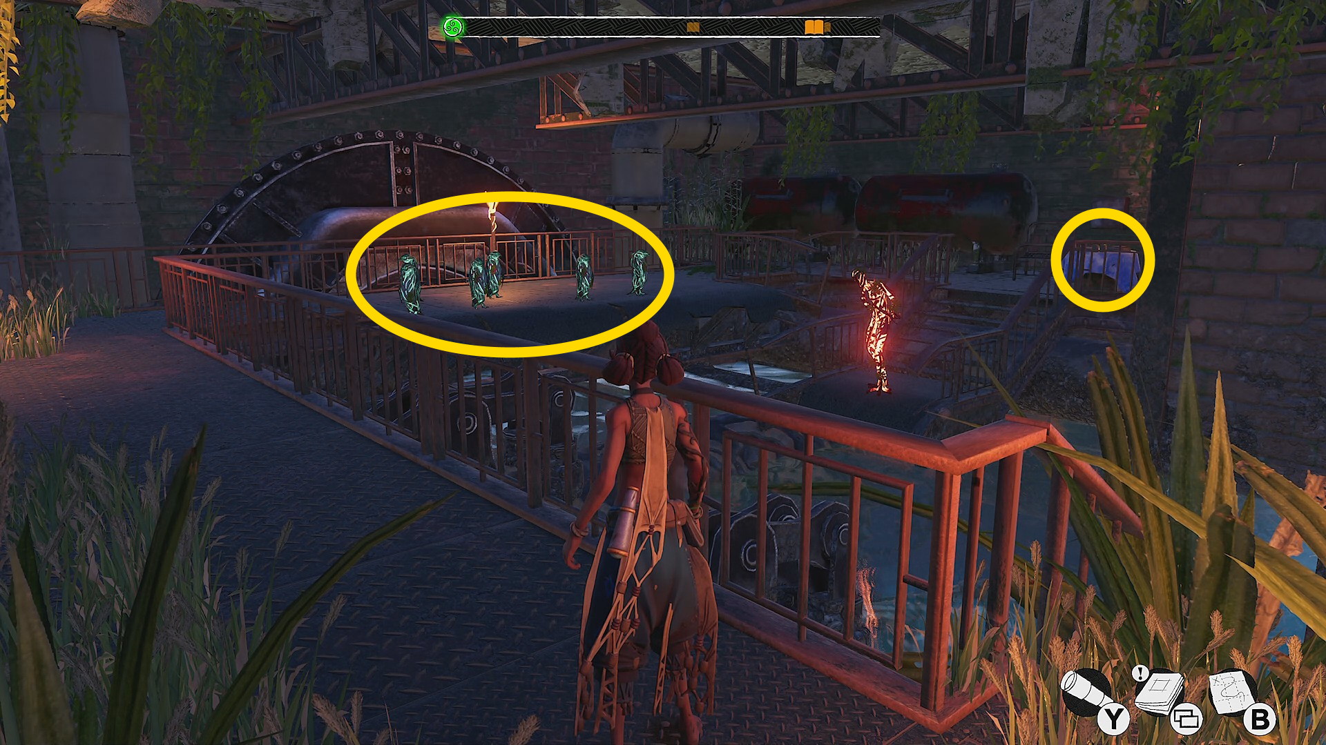 - ターザンロープ×1本を越えた先、レムナントが数体いるバルコニーに出る