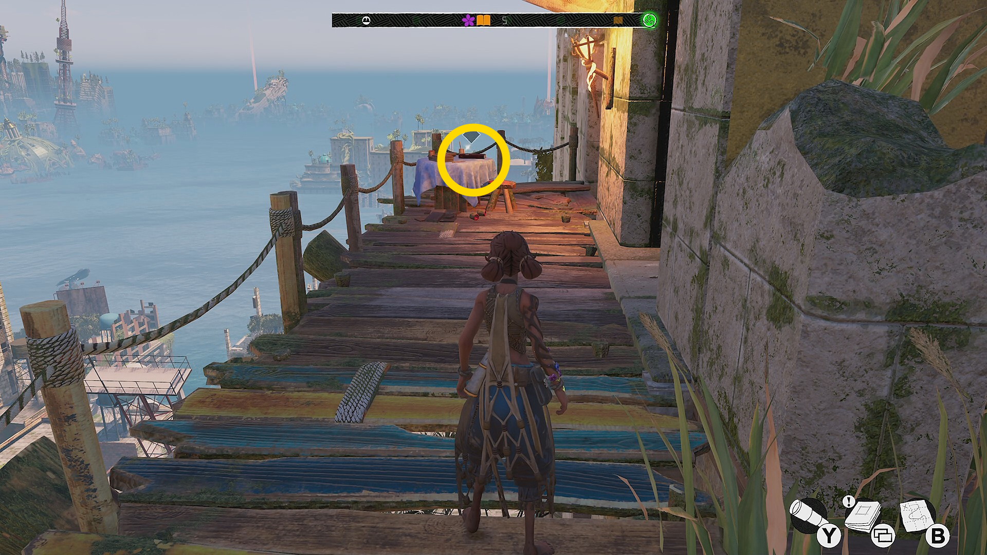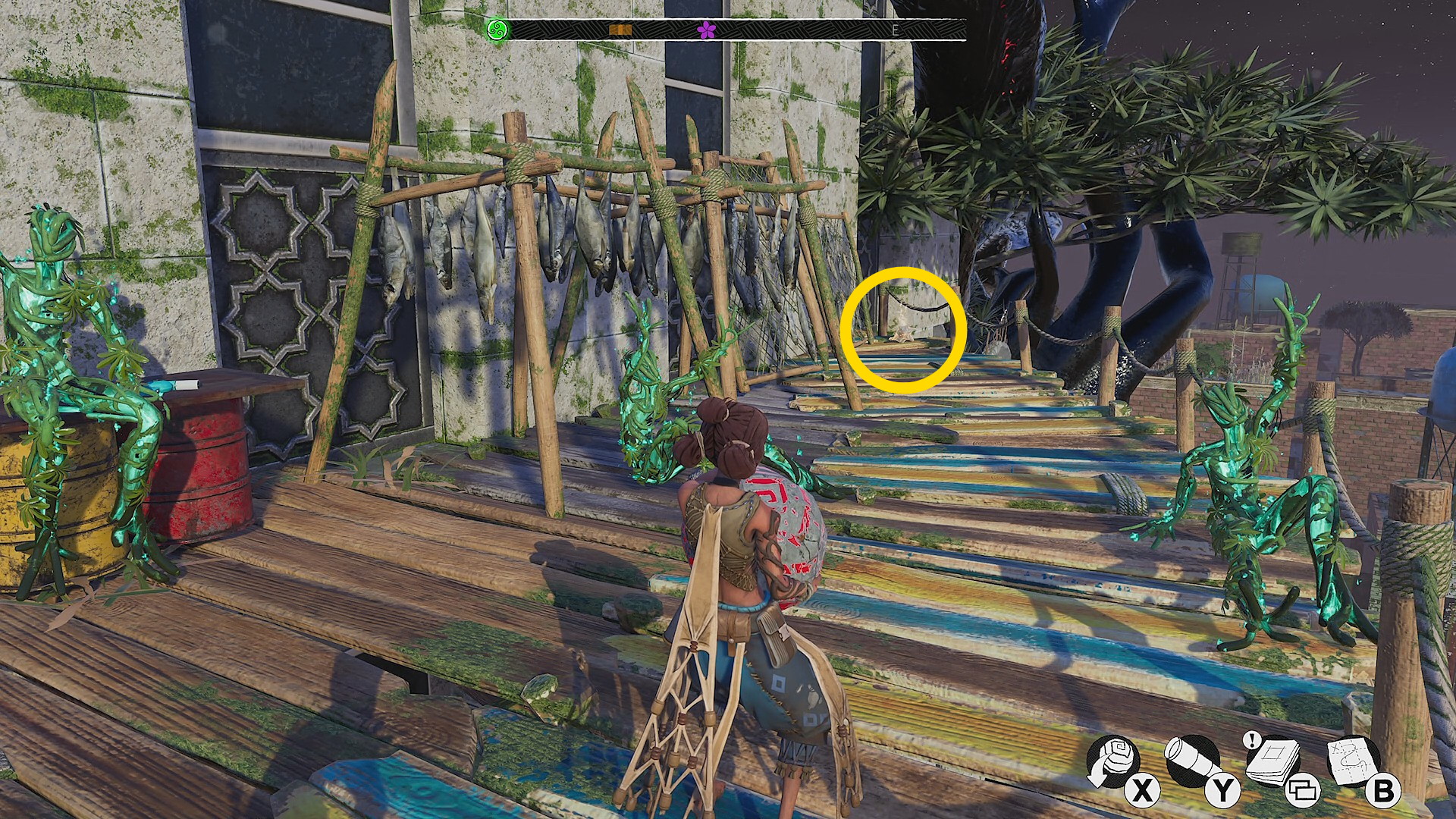 - ボートでゲートを通過し、左側の上陸ポイントから進入すると Columbia 植物園のカットシーン