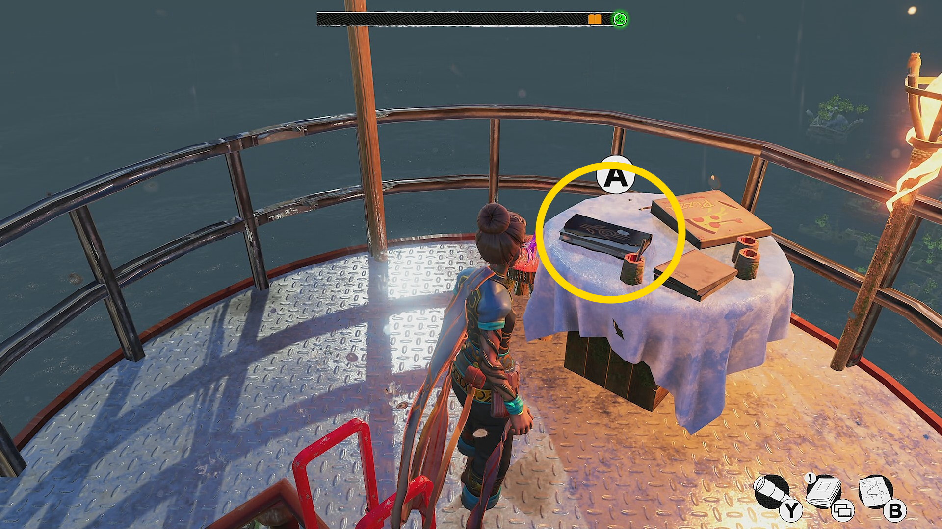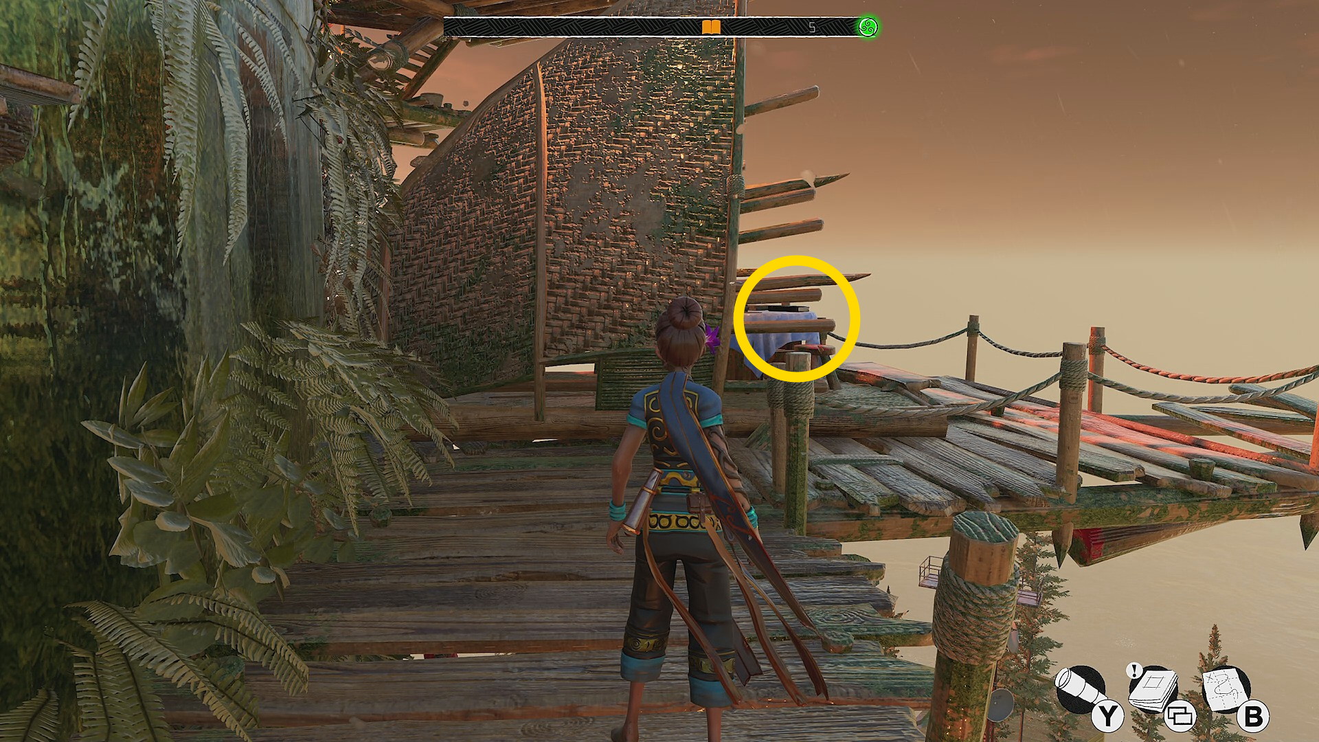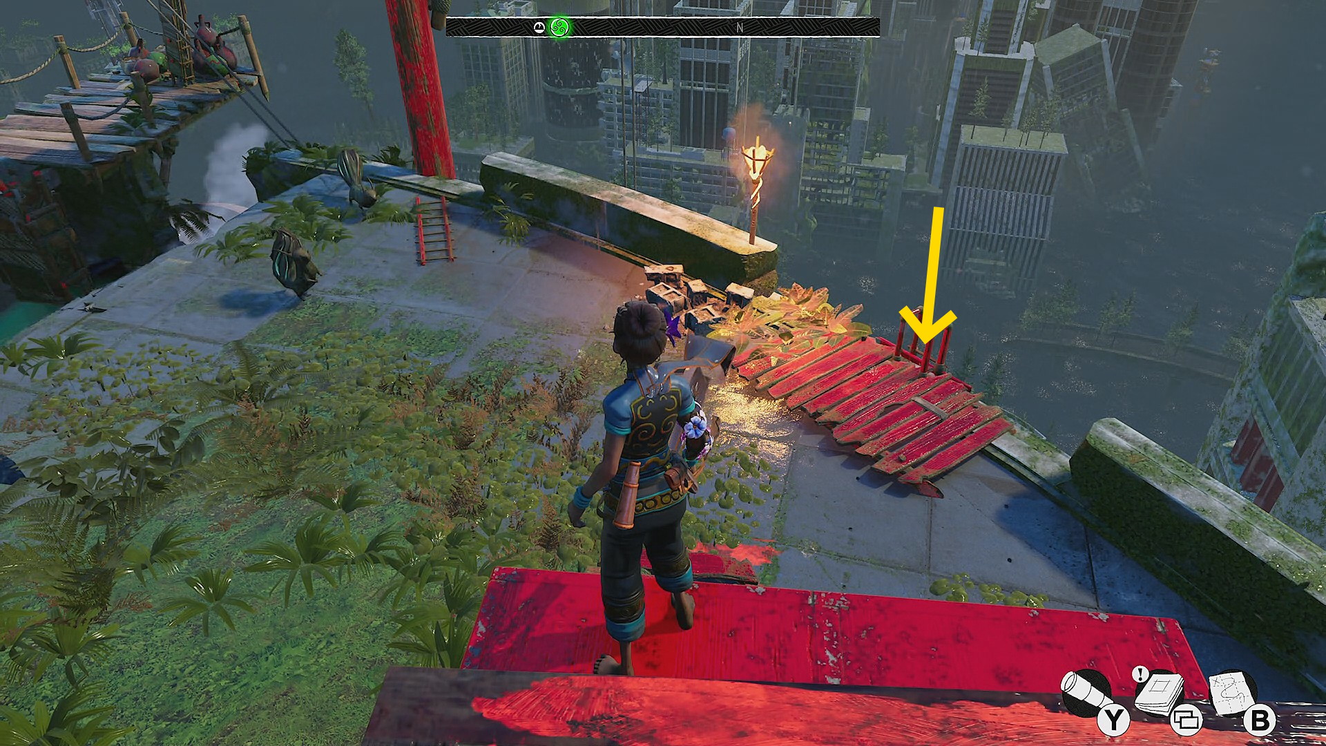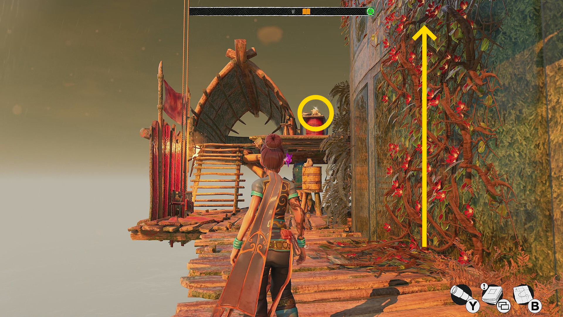 - ツタを登っている途中、左にスタイルピースが見えるがあとで回収する